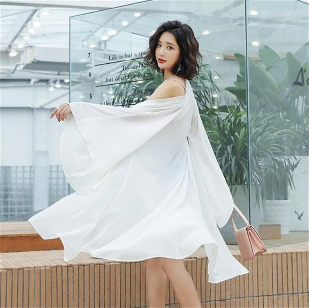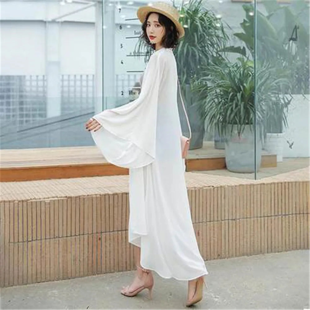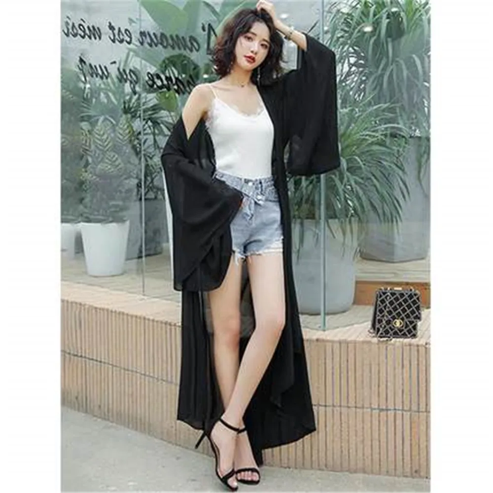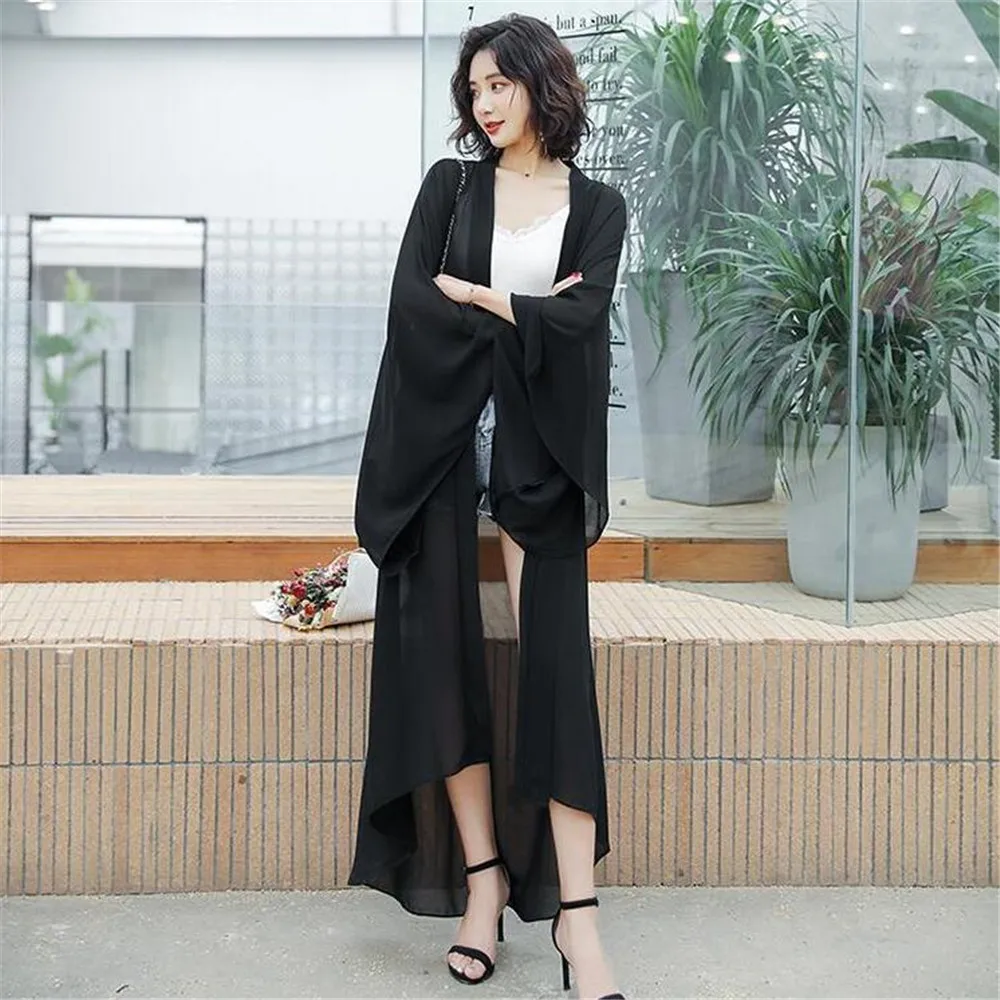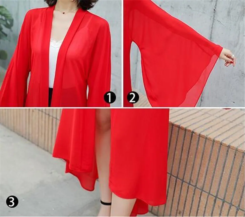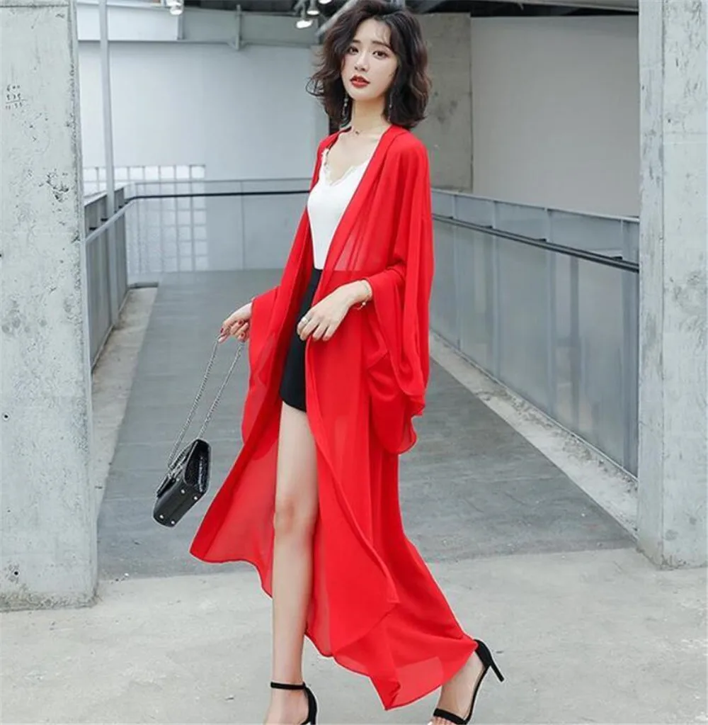 Summer Sun Protection Clothing Women Long Chiffon Cardigan Solid Color Ladies Shawl Female Cardigans Women Loose Thin Coats