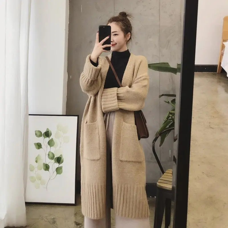 Sweater Cardigan Female Spring and Autumn Sweater Coat Women Loose Medium Length Versatile Knitted Cardigan