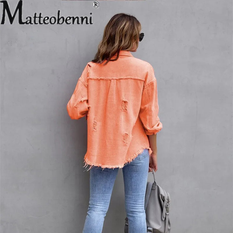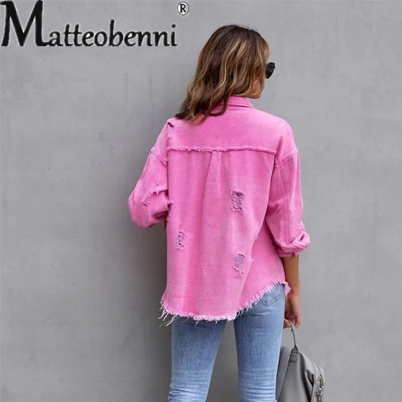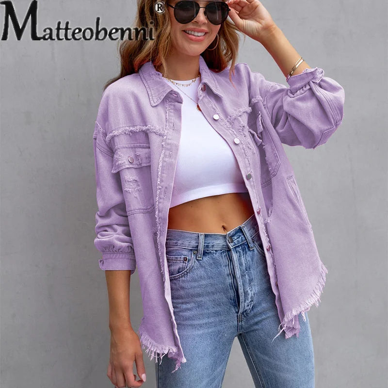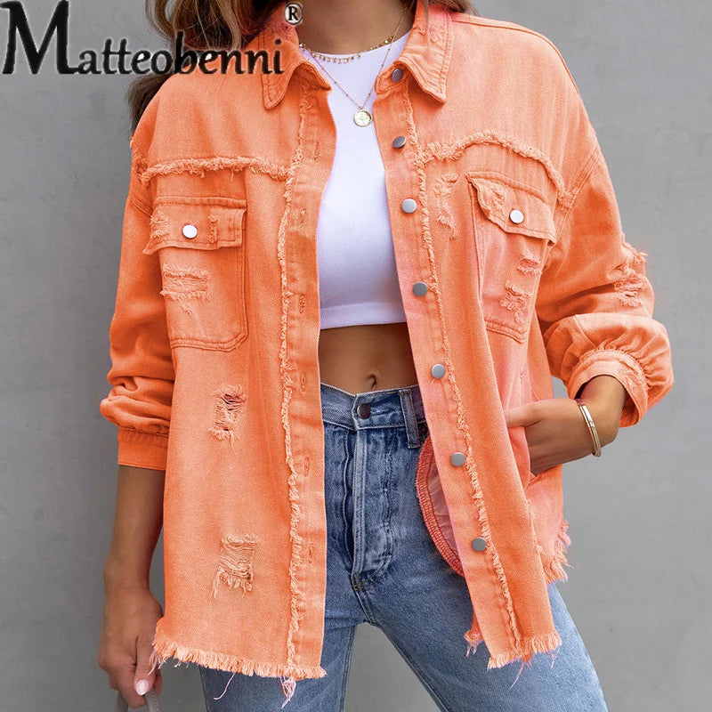 Sweet Color Splicing Pocket Denim Jacket Female Fashion Streetwear Lapel Long Sleeves Single-breasted Cardigan Loose Women Coat