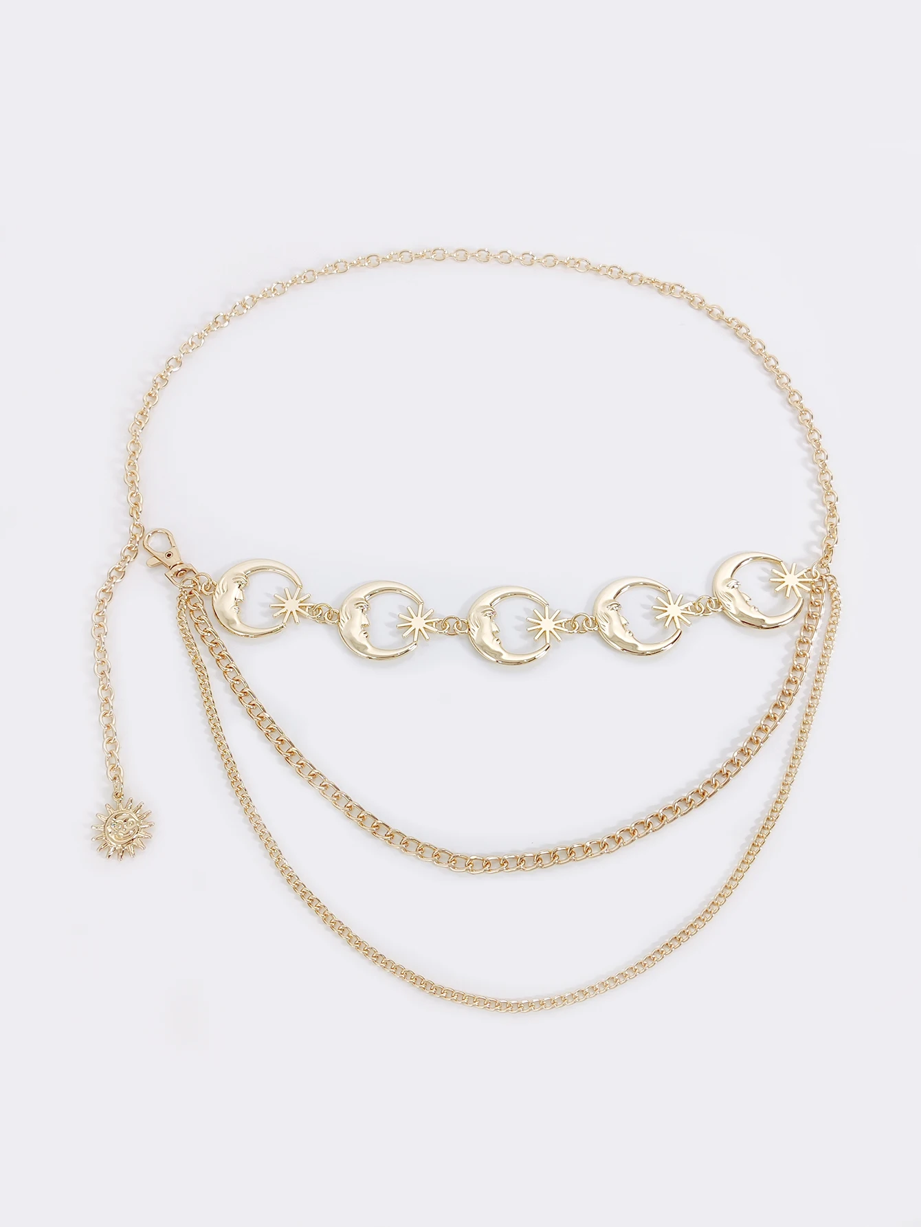 Tassel Waist Gold Chain Belt Accessory Metal Sun Moon Belts For Women High Quality Luxury Waistband