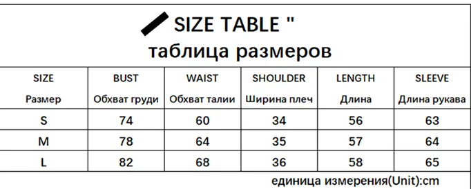S Length: 56 Bust: 74 Waist: 60 Sleeve: 63