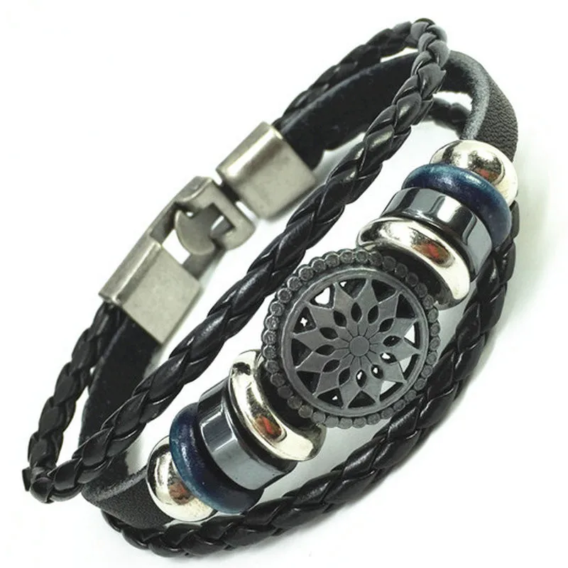Tree Male Unique Design Trendy Vintage Cuff Men Bracelets PU Leather Bracelets Bangles for Men Jewelry