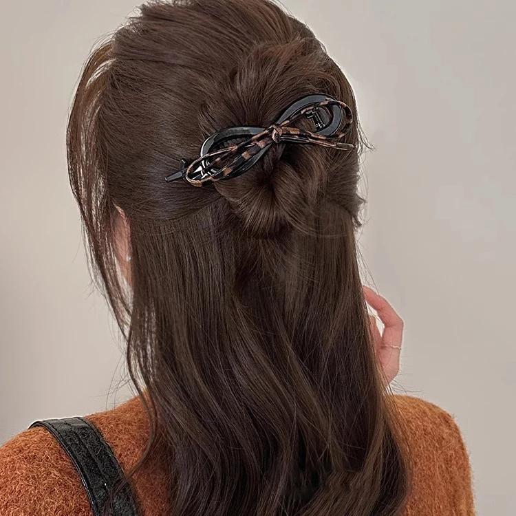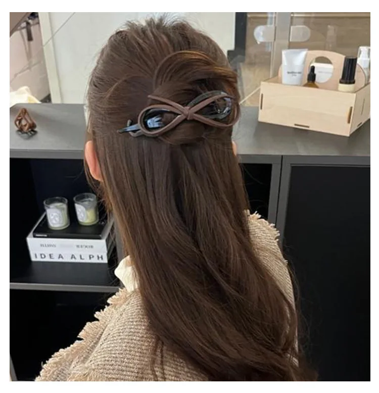 New Twisted Hair Clip PU Bow Barrettes Large Size Hair Clips Plastic Hairpin Sweet Daily Headwear Women Hair Accessories