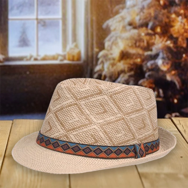 Men Beach Hat Breathable Western Style Cowgirl Straw Hat Stylish Wide Brim Sun Hat