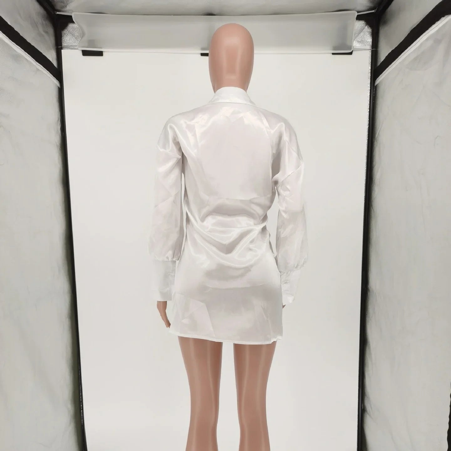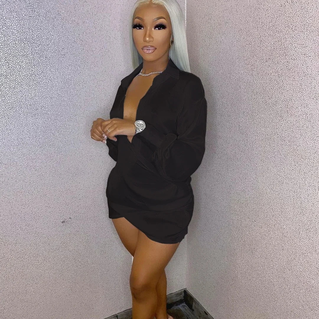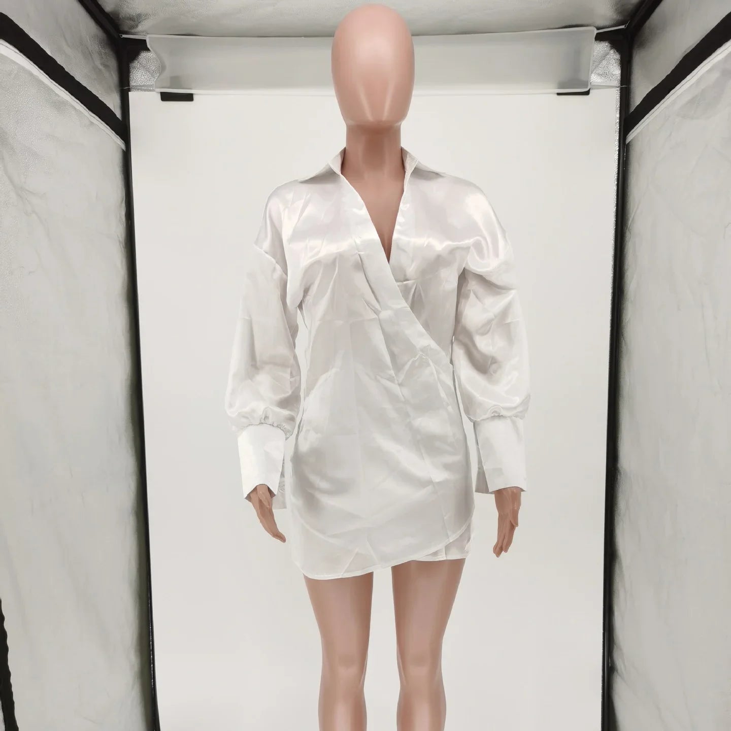 V-neck Dress Long Sleeve Solid Color Mini Dresses