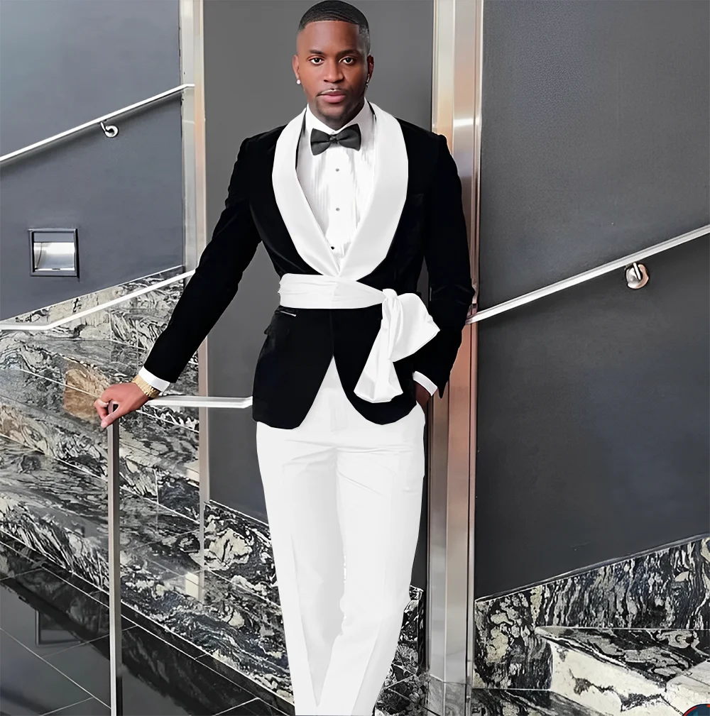 Make a bold impression on your big day with this elegant 3-piece men's velvet suit, designed for weddings and formal occasions. Featuring a luxurious single-breasted velvet jacket, matching vest, and flat-front trousers, this suit combines timeless sophistication with a fashion-forward edge. Crafted from a soft polyester-wool blend with a non-woven finish, it offers a comfortable loose fit and is suitable for all seasons. Perfect for grooms seeking a distinctive, customized look with refined style.