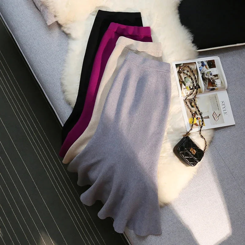 Vintage Knit Long High Waist Slim Mermaid Trumpet Skirt