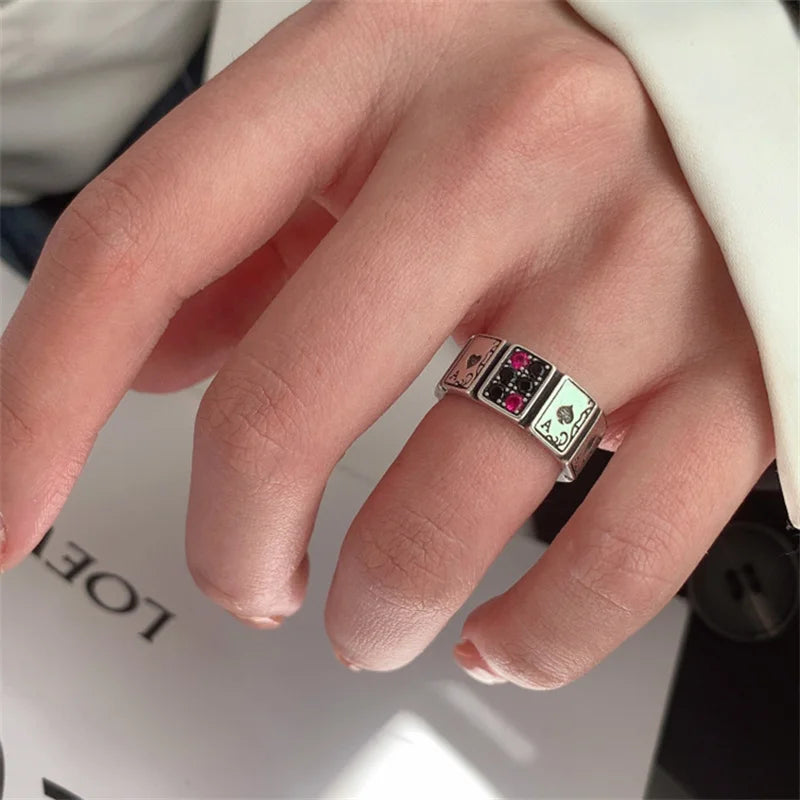 New Vintage Lucky Poker Adjustable Open Rings For Women Men Playing Card Finger Stainless Steel Ring Fashion Party Jewelry