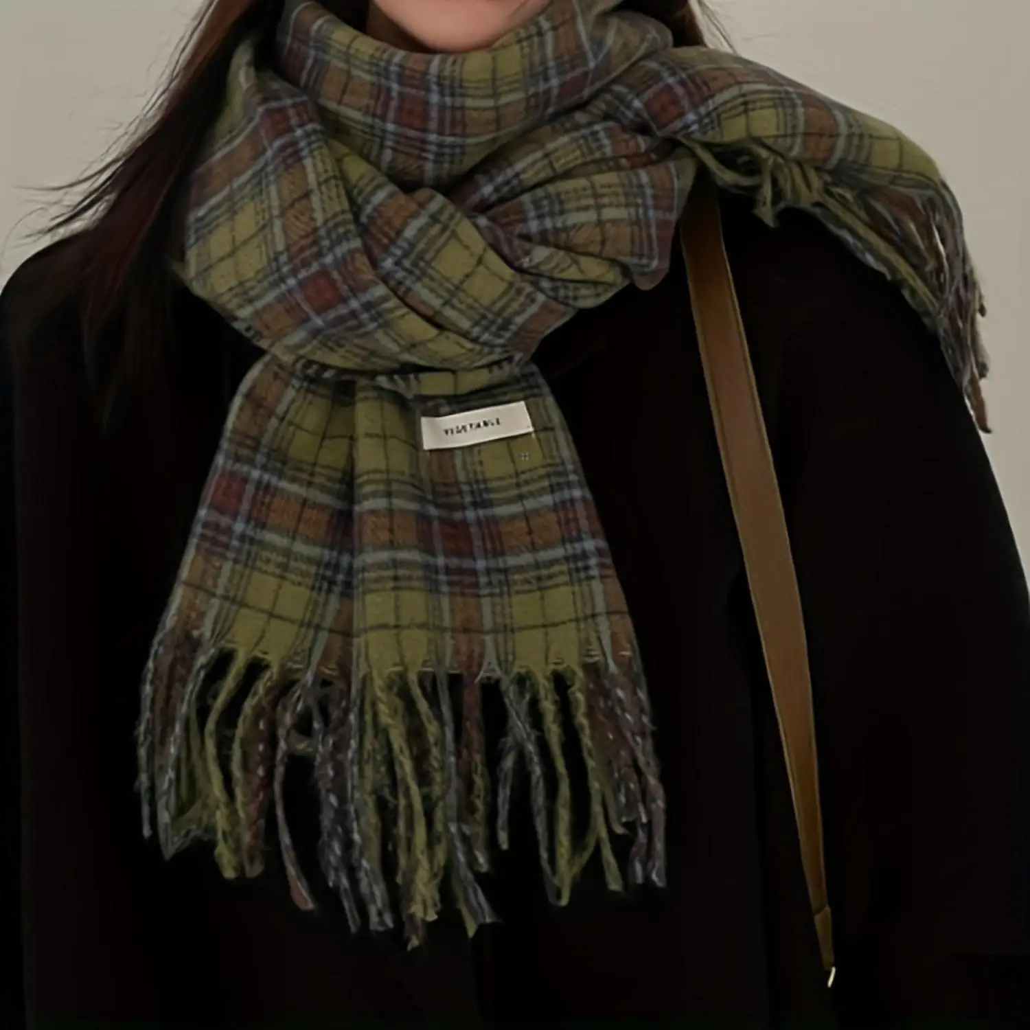 Vintage Plaid Scarf - Luxurious Imitation Cashmere, Ultra-Soft, Warm and Cozy, Inelastic, Coldproof - Elegant Tassel Trim