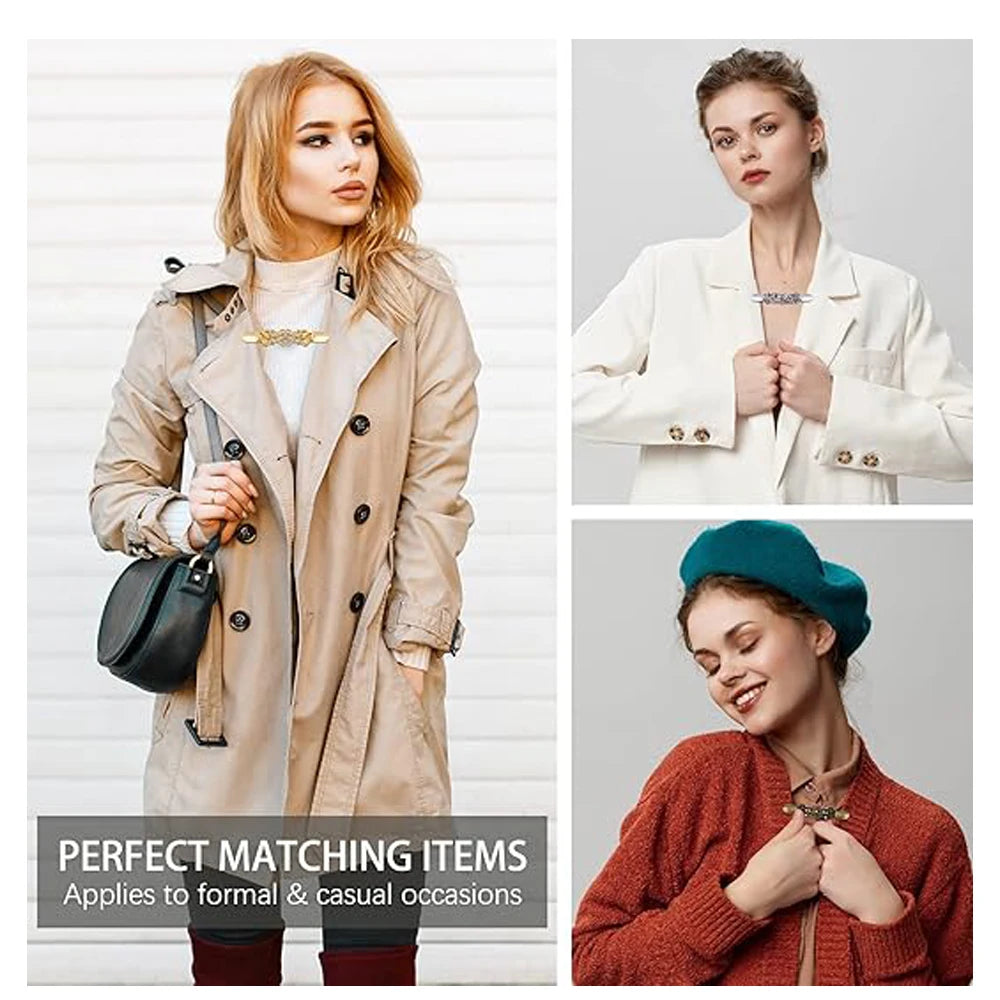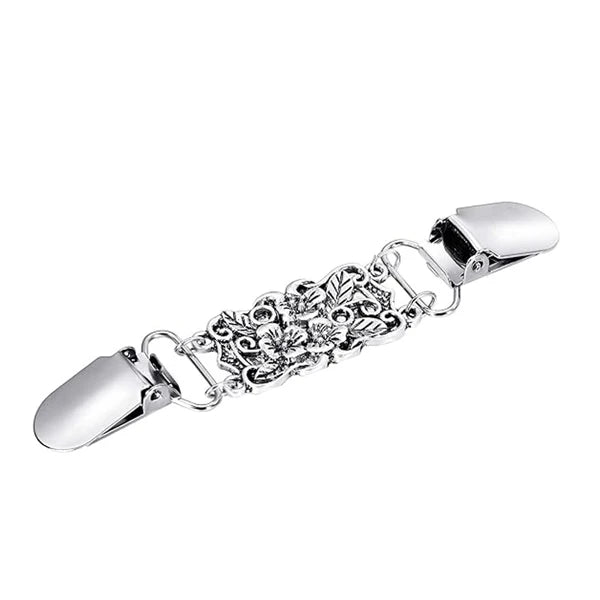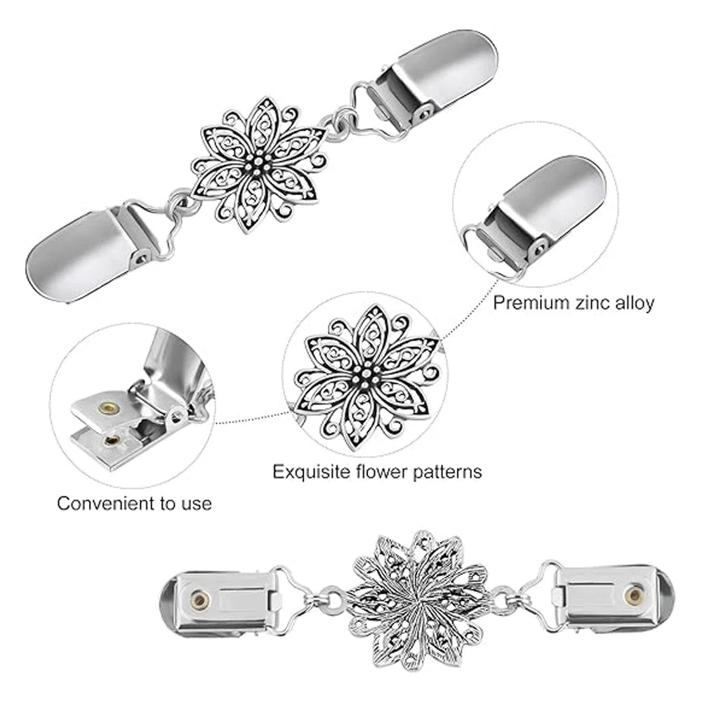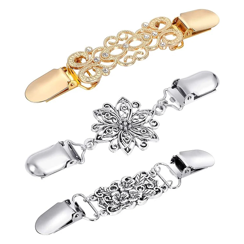 Add a vintage touch to your wardrobe with these elegant sweater shawl clips, designed in classic flower patterns. Crafted from durable metal, these U-shaped clips come in three stylish shapes, perfect for securing cardigans, collars, dresses, and shirts. A versatile accessory for women seeking to elevate their look with a retro flair.