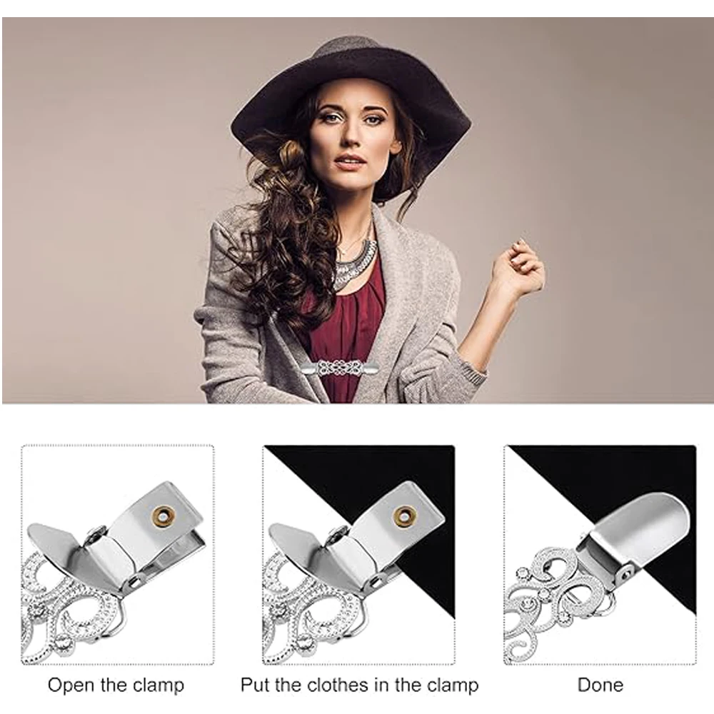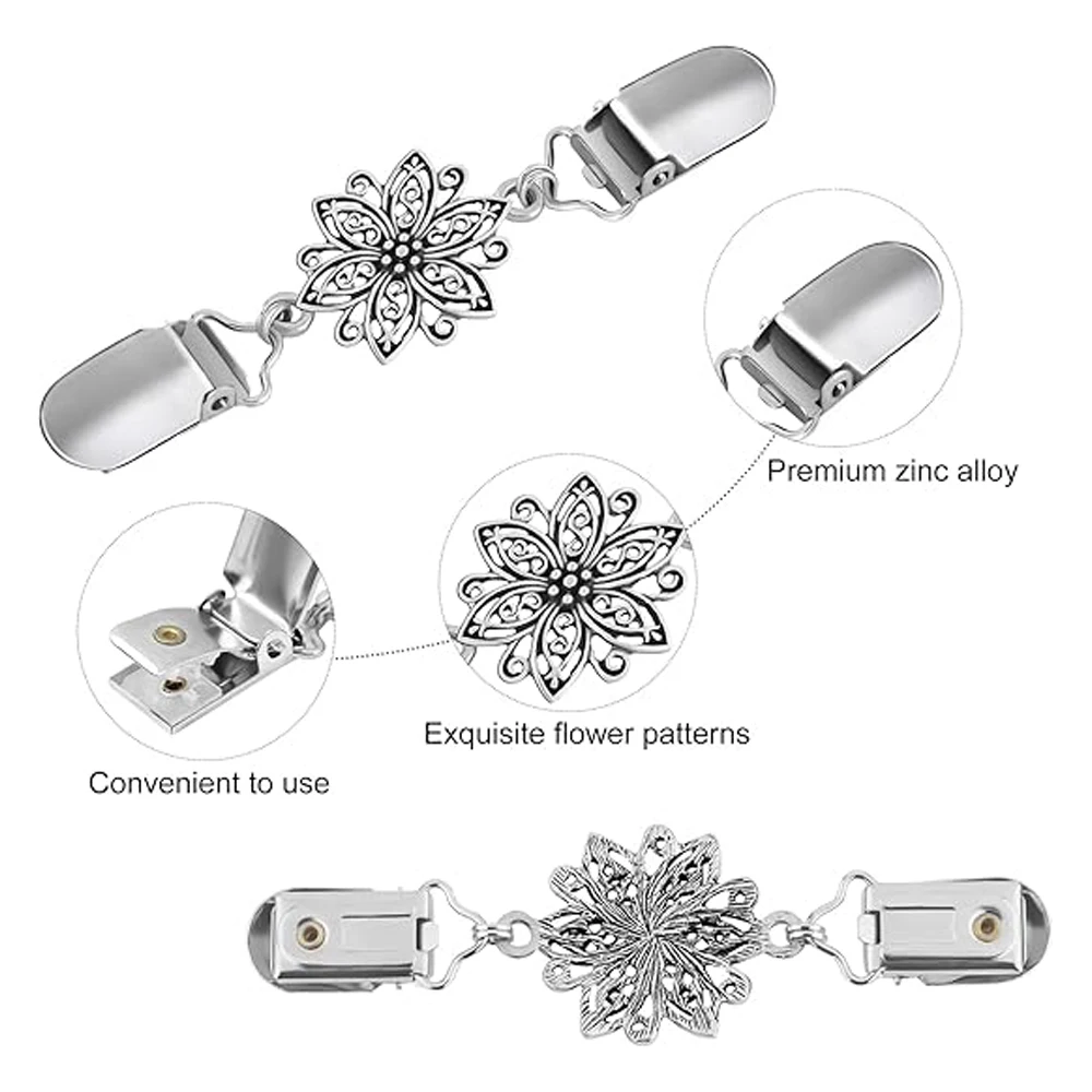 Vintage Sweater Shawl Clips Flower Patterns Retro Cardigan Collar Dresses Clips Brooch Clips Shirt Clips for Women