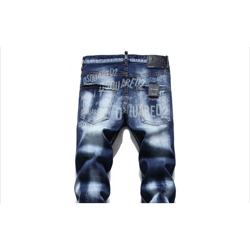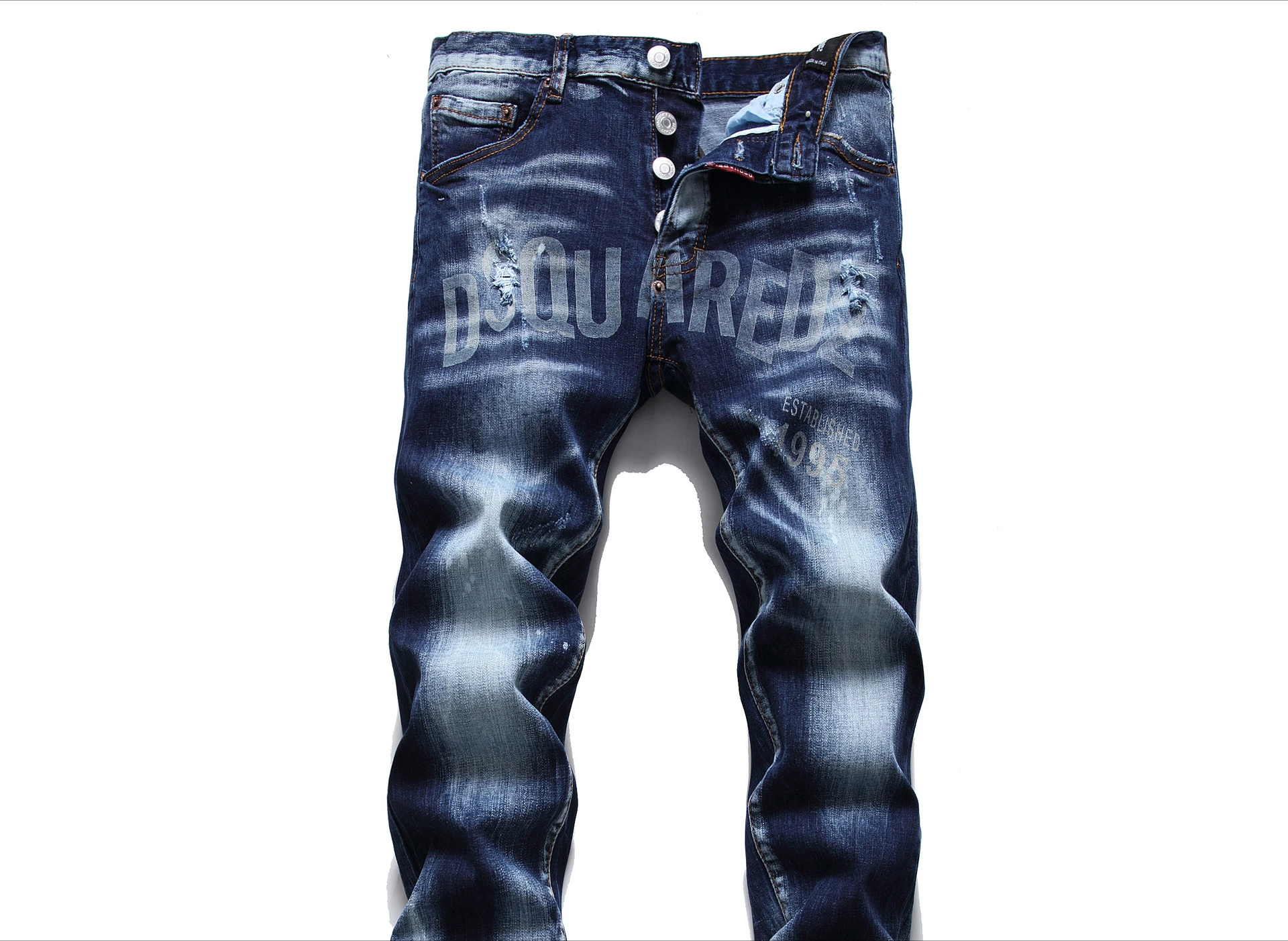 Watermark Button Fly Laser Stereo Cat Beard Blue Cotton Elastic Slim Straight Jeans Basic Trend Can Be Worn in All Season