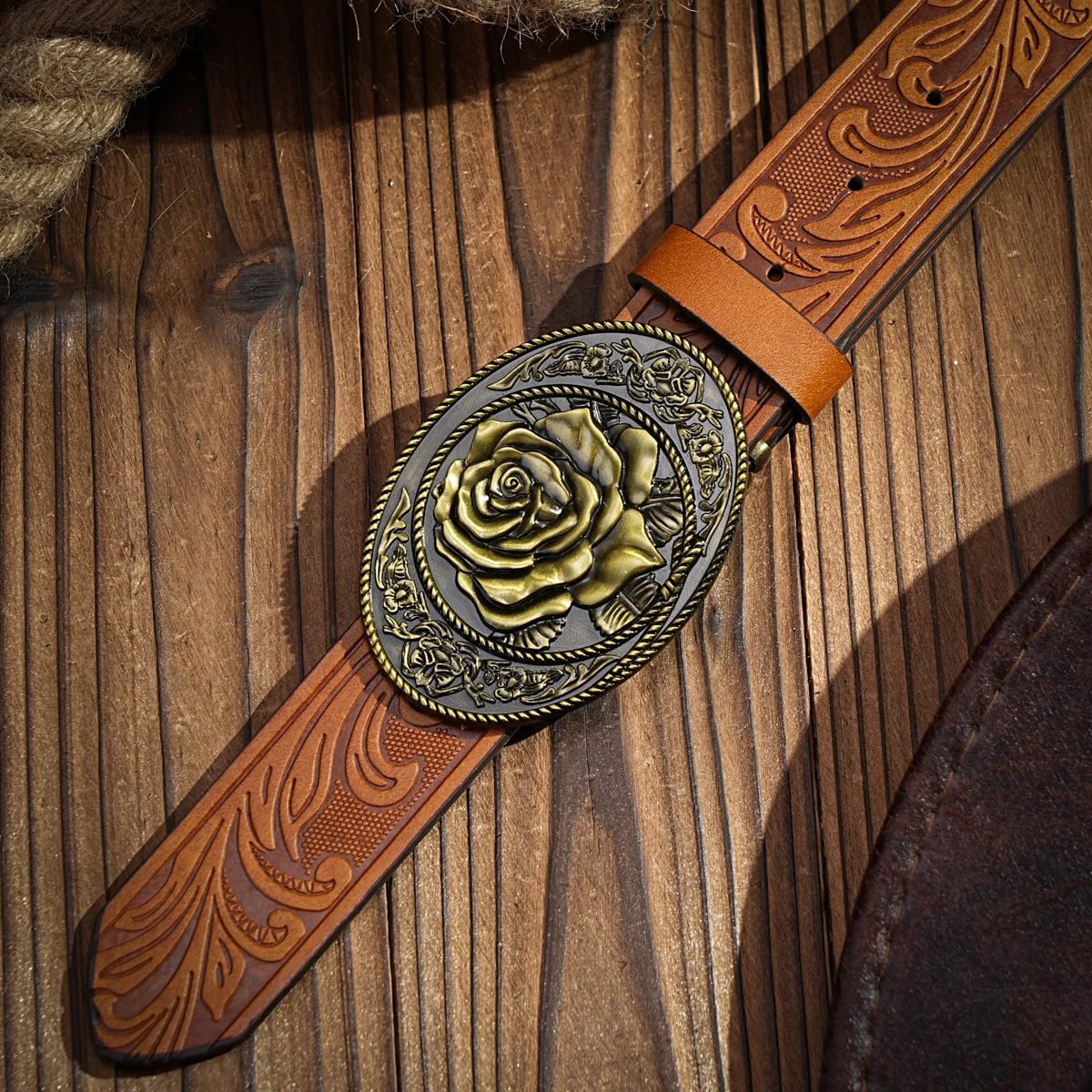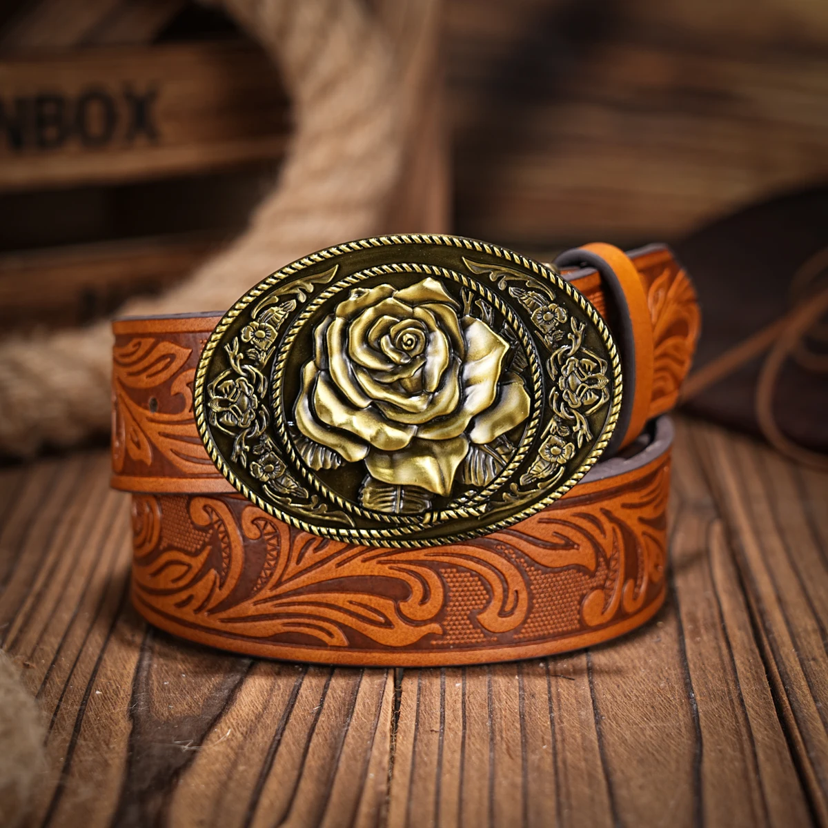 Add Western charm to your wardrobe with this women's PU denim belt, featuring decorative rose buckle and intricate carved detailing. Perfect as a statement waistband, it blends rugged denim style with feminine elegance, making it an ideal accessory for jeans, skirts, or dresses.