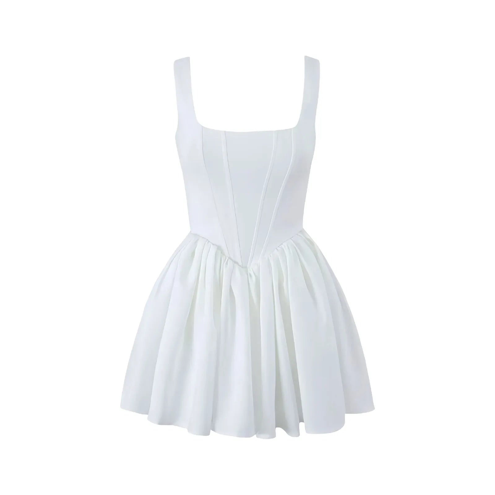 White Dress For Women French Sleeveless Square Neck Bodycon Party Dress High Waist Backless Spaghetti Strap Sexy Mini Dress