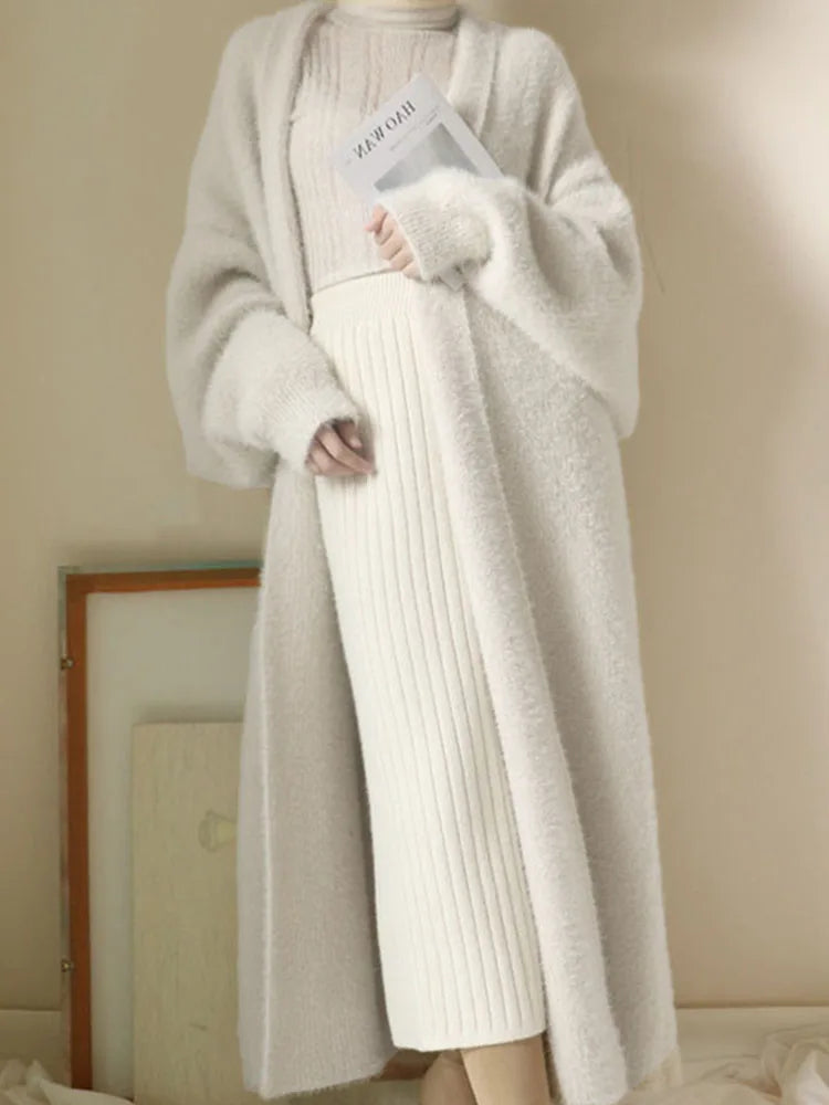 white Long Cardigan for women winter clothes Knitted fluffy long sleeve Cashmere sweater coat warm vintage