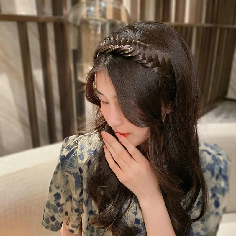 Wig Twist Headbands For Women Wide Fishbone Braids Hairbands Handmade Retro Head Hoop Hair Styling Headwear Accessories