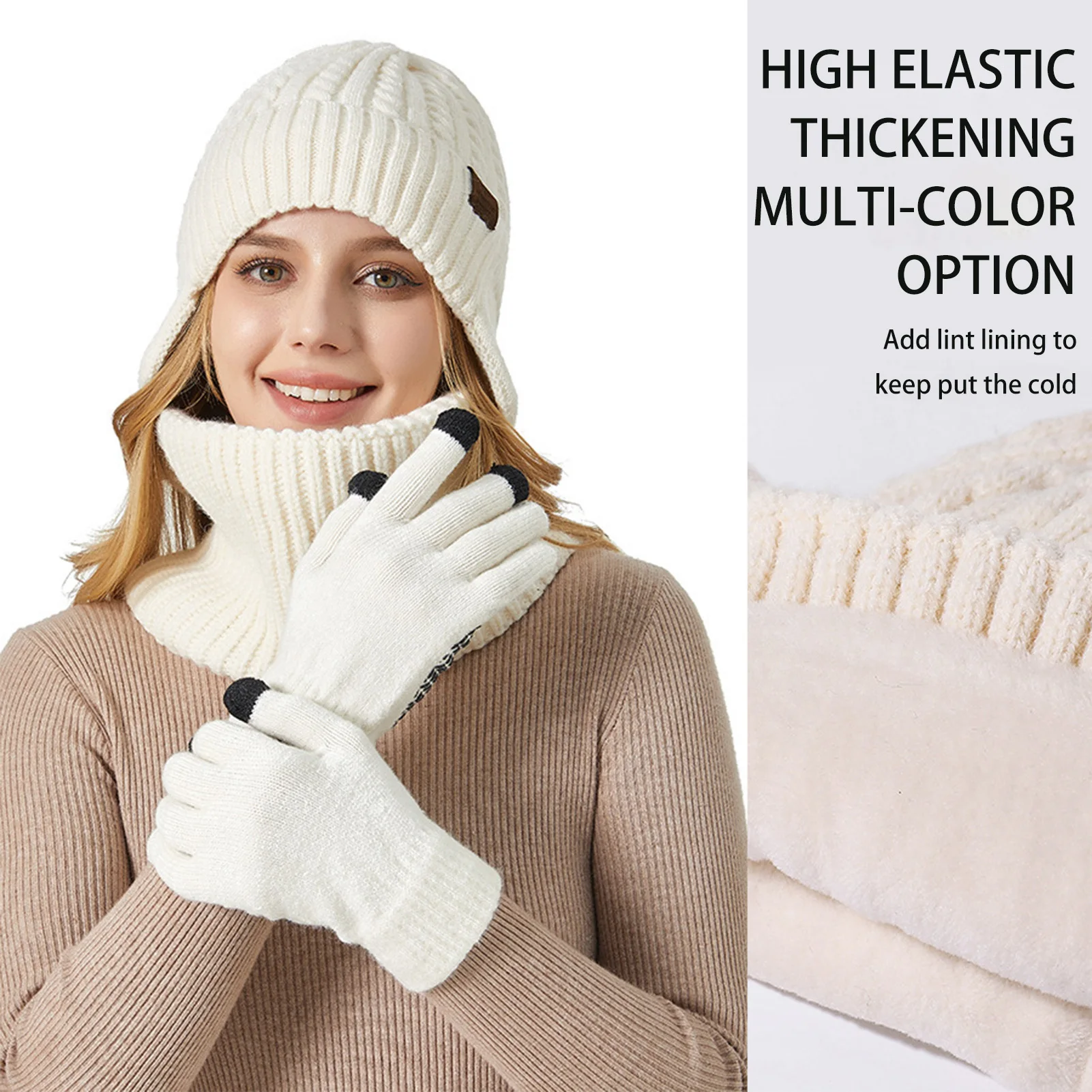 Winter Hat Glove Scarf Sets Knit Slouchy Beanie Hat Neck Warmer Screen-Touch Texting Gloves for Snow Cold Weather