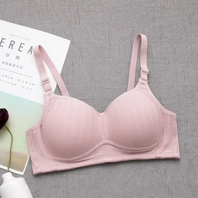 Wireless Push Up Bra Cotton Gathered Comfort V