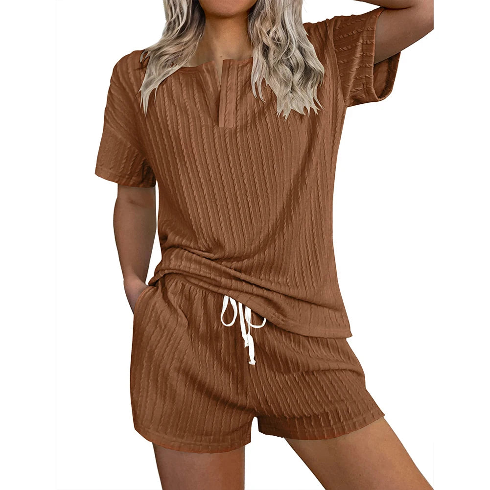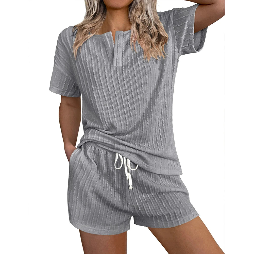 Women’s 2-Piece Lounge Set – V-Neck Top & Shorts