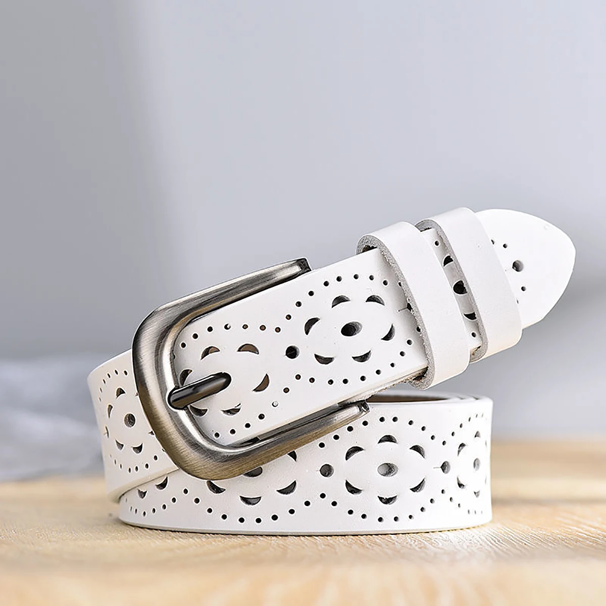 Add a touch of elegance to your wardrobe with this 2.8 cm wide women’s belt, featuring a classic needle buckle and beautiful floral engravings. Made from metal and faux leather, this fashion-forward belt is available in five chic colors and designed with stylish cutouts—perfect for dresses, jeans, or layering over outerwear.