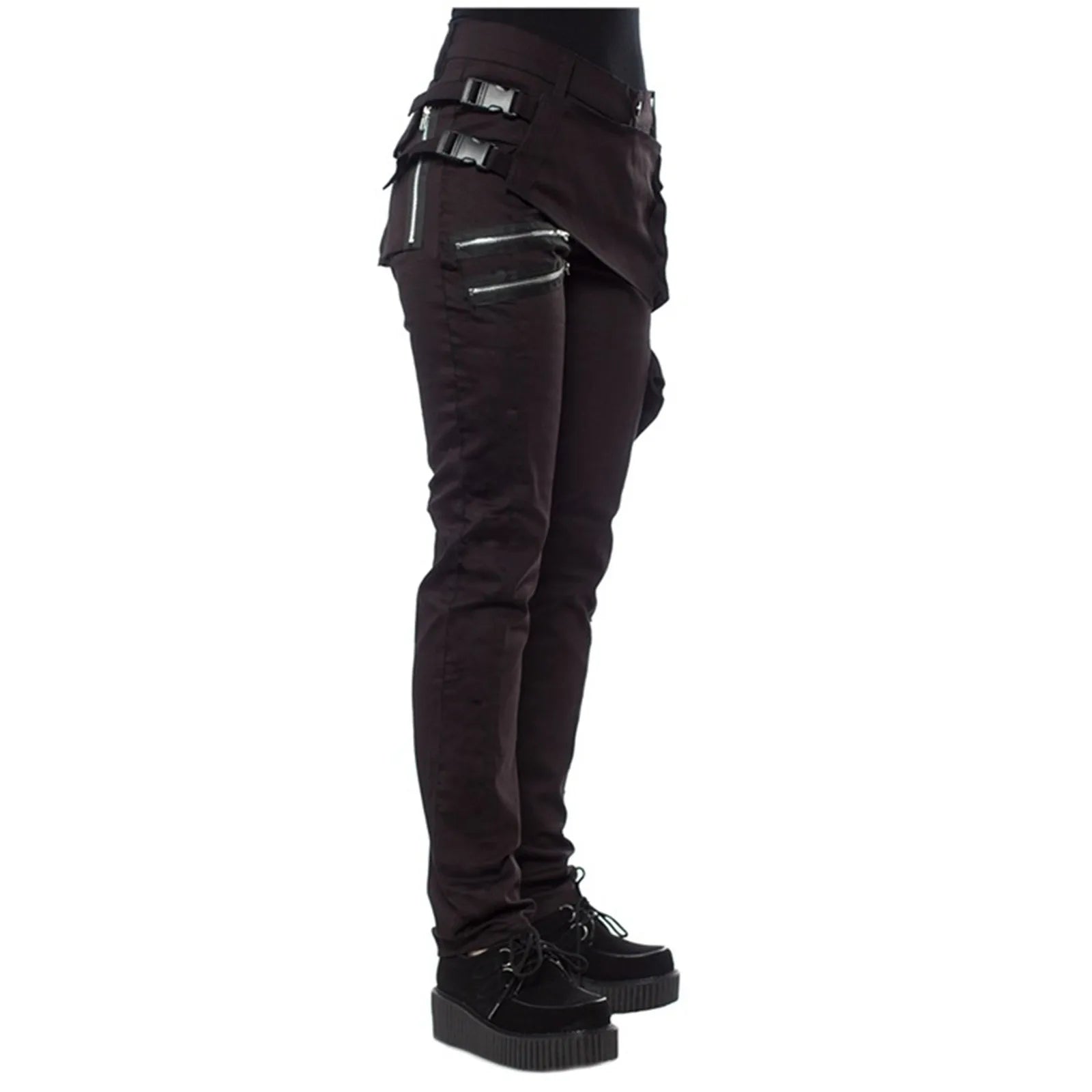 Women Gothic Pants Zipper Pockets Rivet Steampunk Trousers Rock Style Cargo Pants Cool Hip Hop Motorcycle