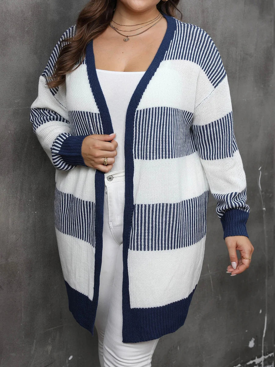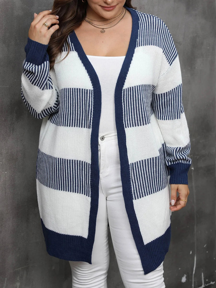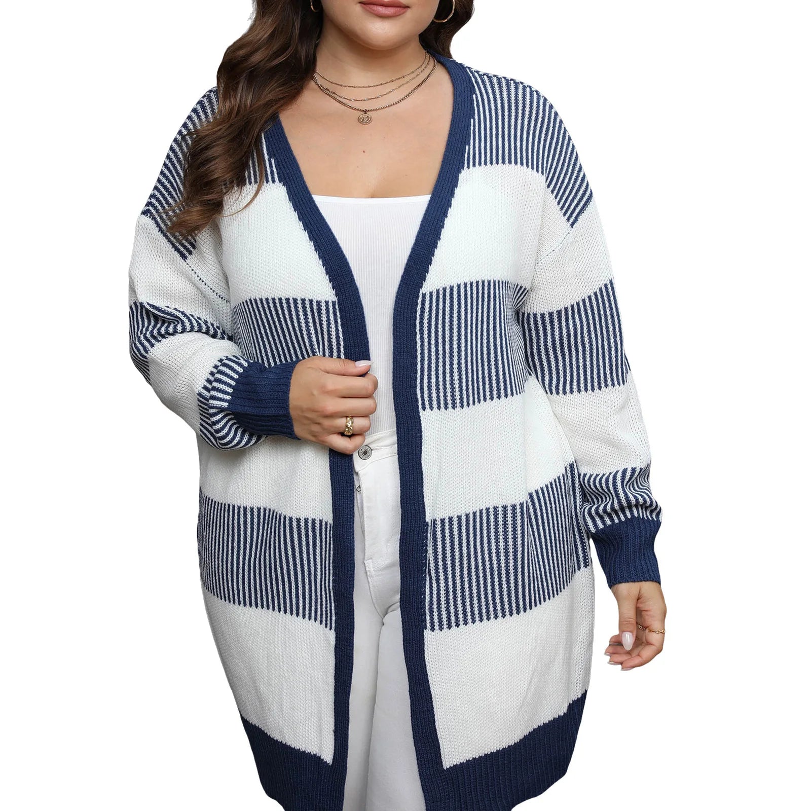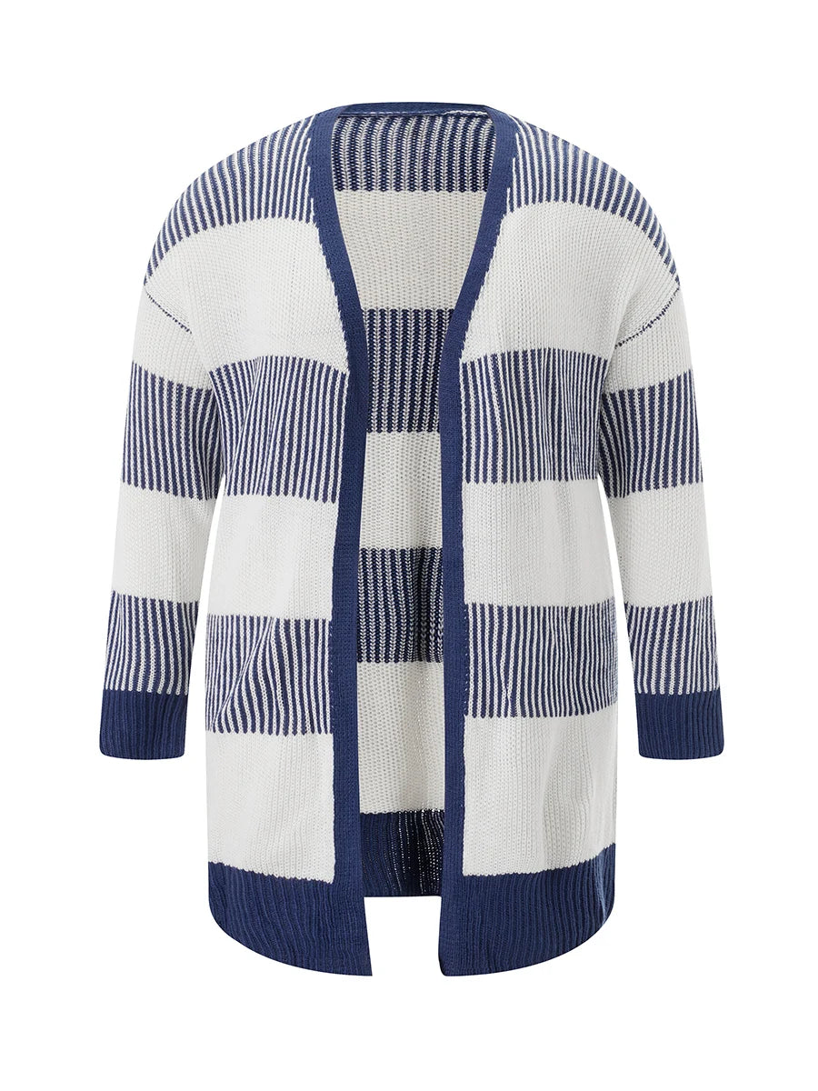 Women Knit Cardigan Long Sleeve Open Front Contrast Color Fall Casual Jacket Sweater