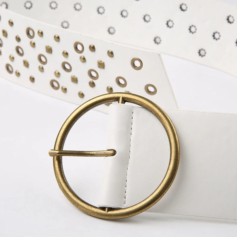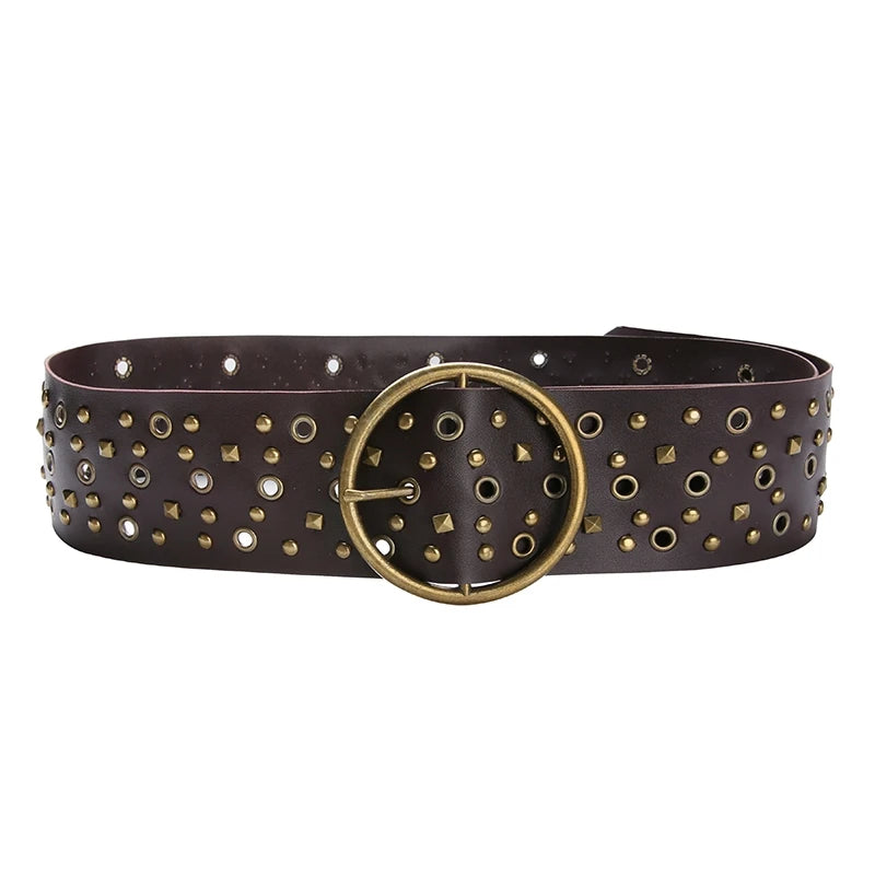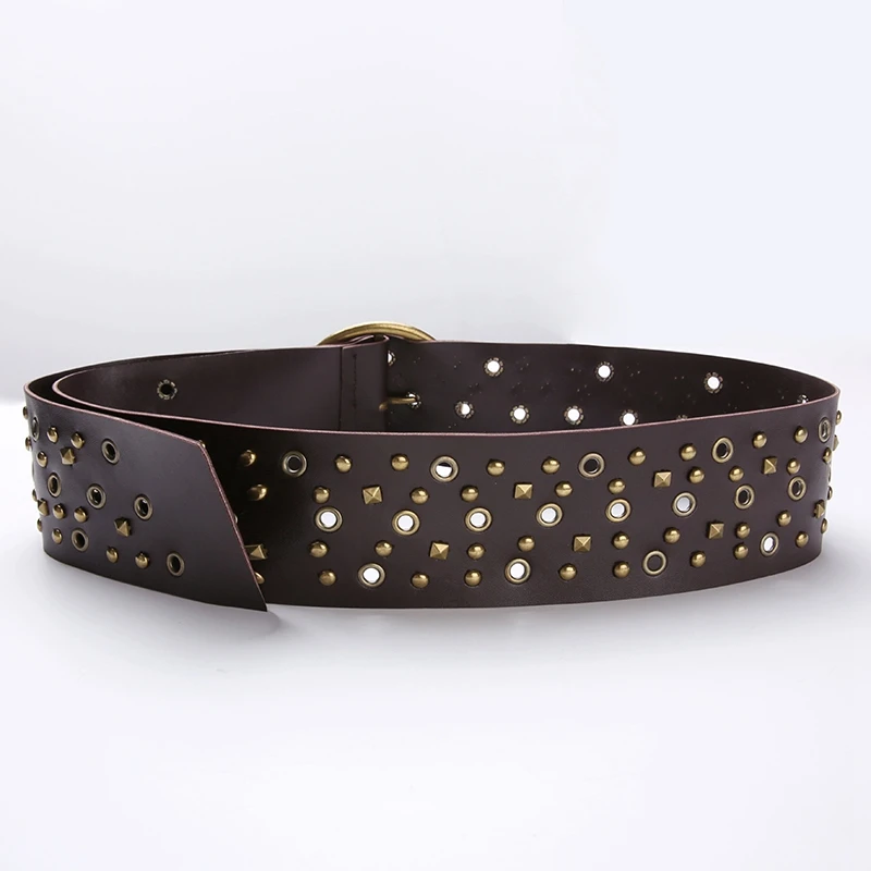 Add vintage edge to your wardrobe with this 6 cm wide PU leather belt, featuring retro rivet detailing and a classic pin buckle. Designed for women, this solid-pattern cinch belt combines fashion and function, making it a stylish accessory for dresses, jeans, pants, and more. Crafted from PU and metal, it's perfect for elevating everyday looks.