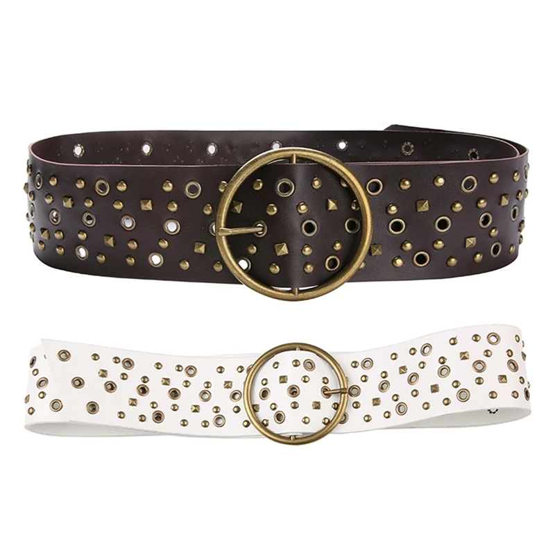 Women PU Leather Belt Retro Vintage Riveted Pin Buckle Wide Cinch Belt Wide Belt for Dress Jeans Pants Clothing Accessories