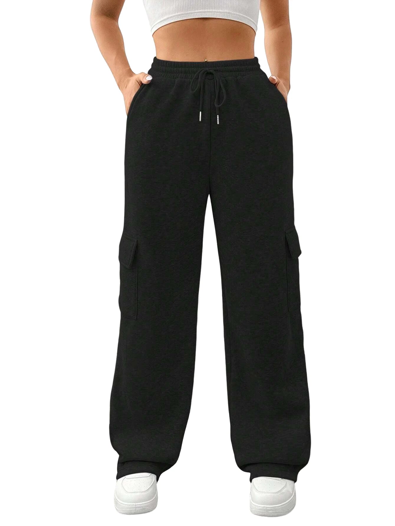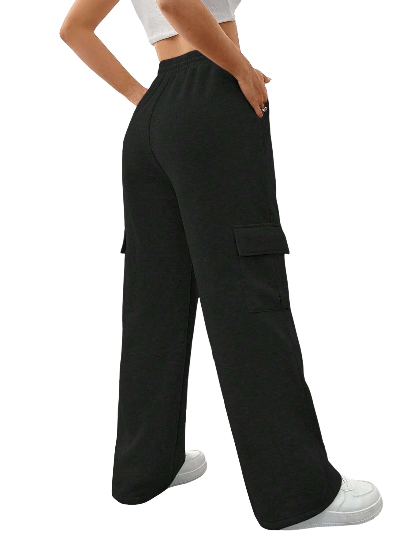 Women Running Cargo Sweatpants Fall Straight Baggy Wide Leg Lounge Pants Casual Workout Joggers Pants with Pockets