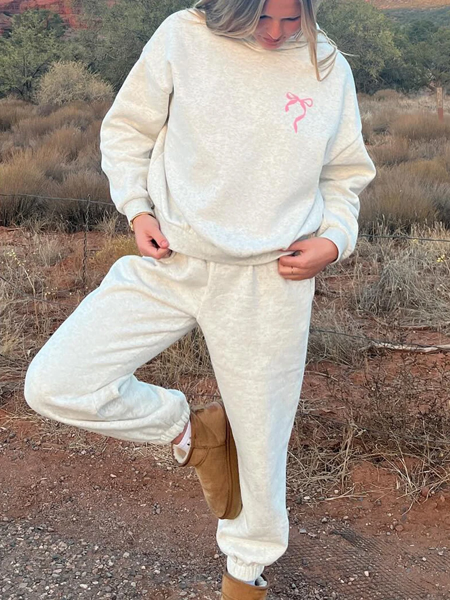Women s 2 Piece Stylish Outfits Long Sleeve Bow Embroidered Sweatshirt Solid Color Jogger Pants Sets for Casual Wear