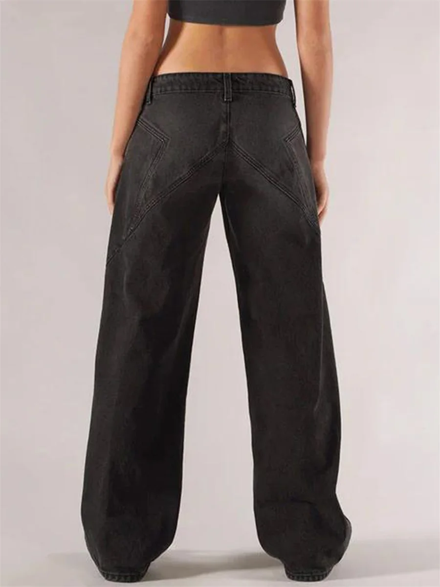Women's Fall Jeans with Pockets Fashion Loose Fit Casual Solid Low Rise Wide Leg Denim Pants