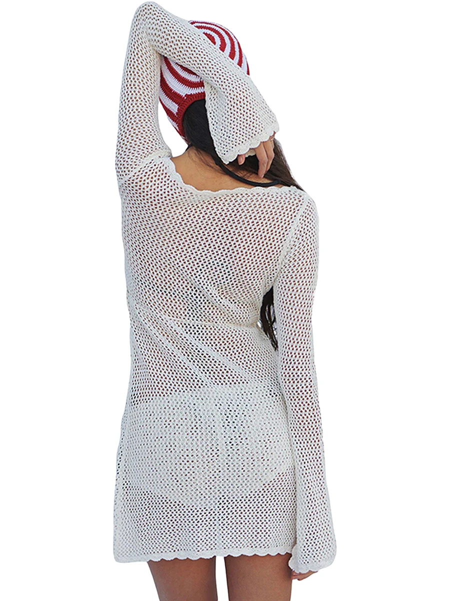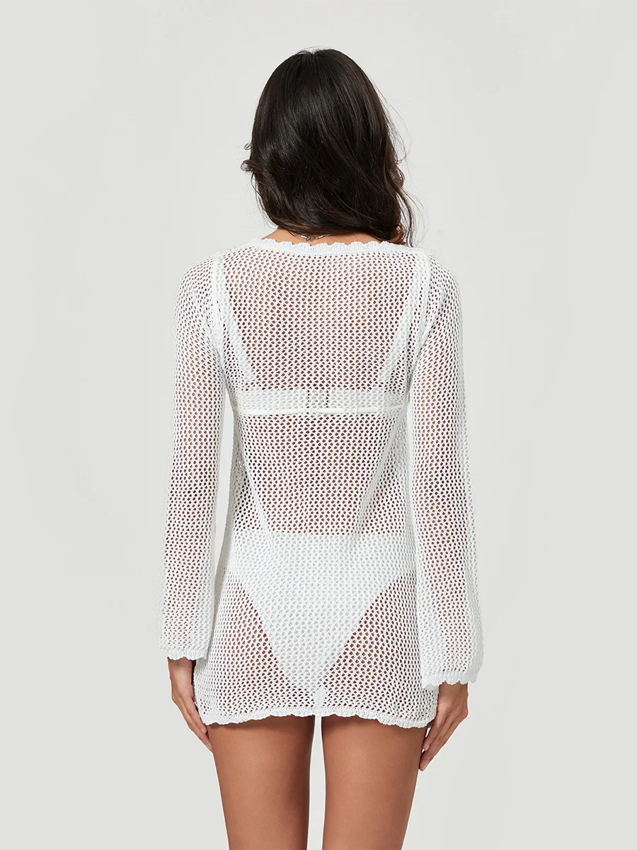 This stylish Women’s Beachwear Cover-Up is made from polyester, offering a perfect balance of comfort and style. Designed with a solid color, it features a hollow-out crochet pattern that adds texture and charm to your beach look. The long sleeves and tie-up design provide an elegant yet relaxed fit, making it a versatile addition to your summer wardrobe. Ideal as a swimsuit cover-up or bathing suit cover-up, this piece is perfect for lounging by the pool or strolling along the beach in effortless style.