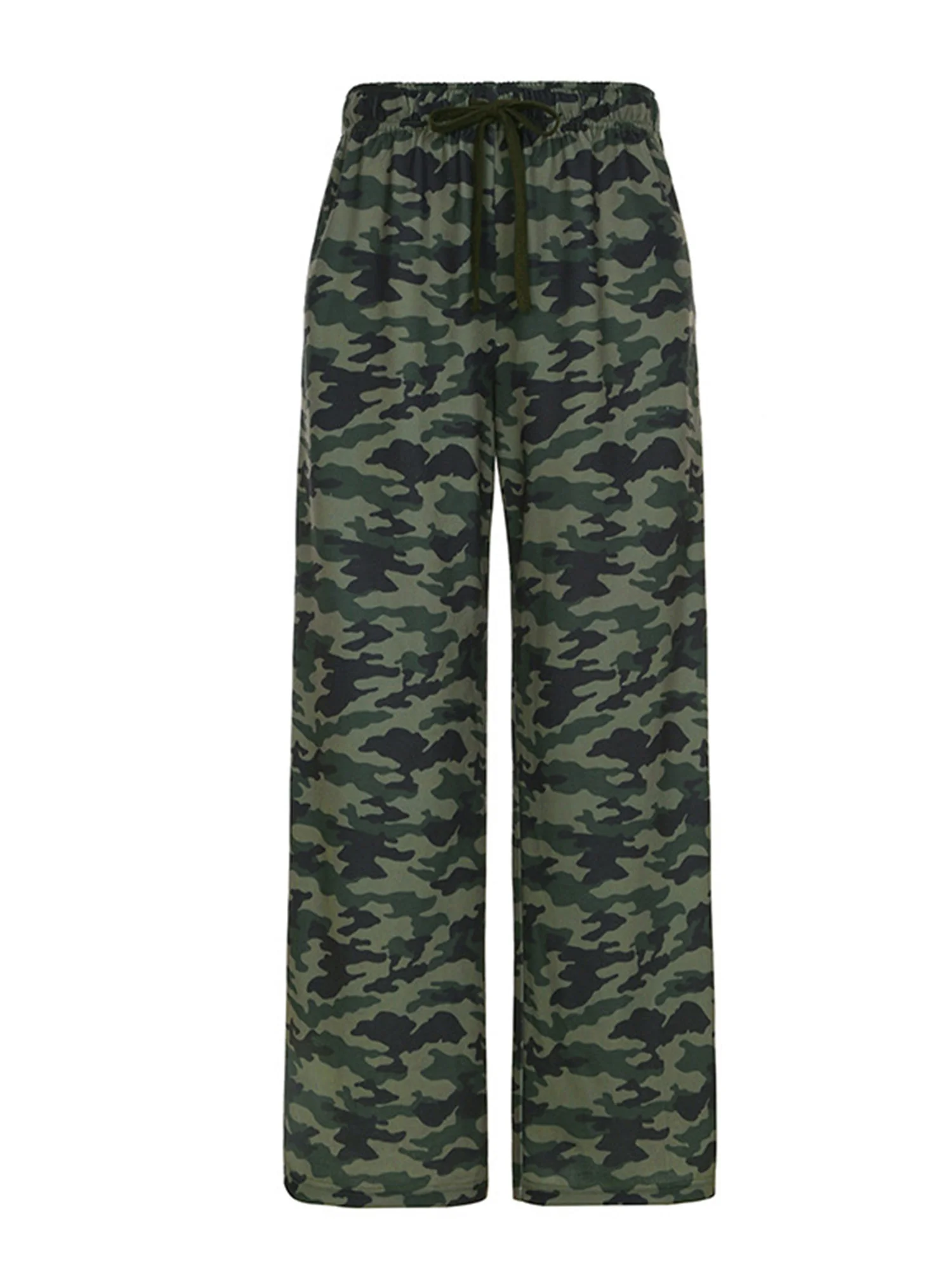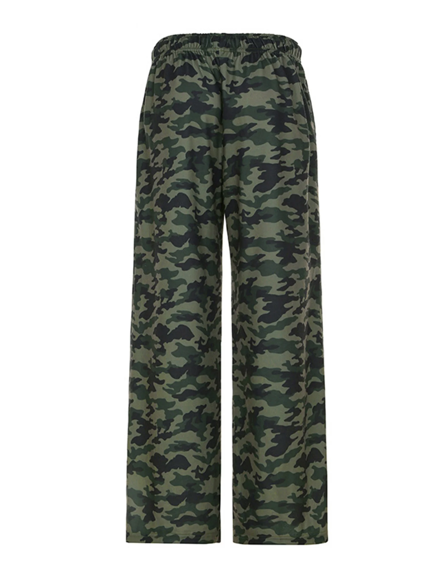 Women Camouflage Pants, Low Waist Wide Leg Pants Loose Casual Trousers StreetwearMatching these wide leg pants with T-shirts and sneakers would be a good choice.