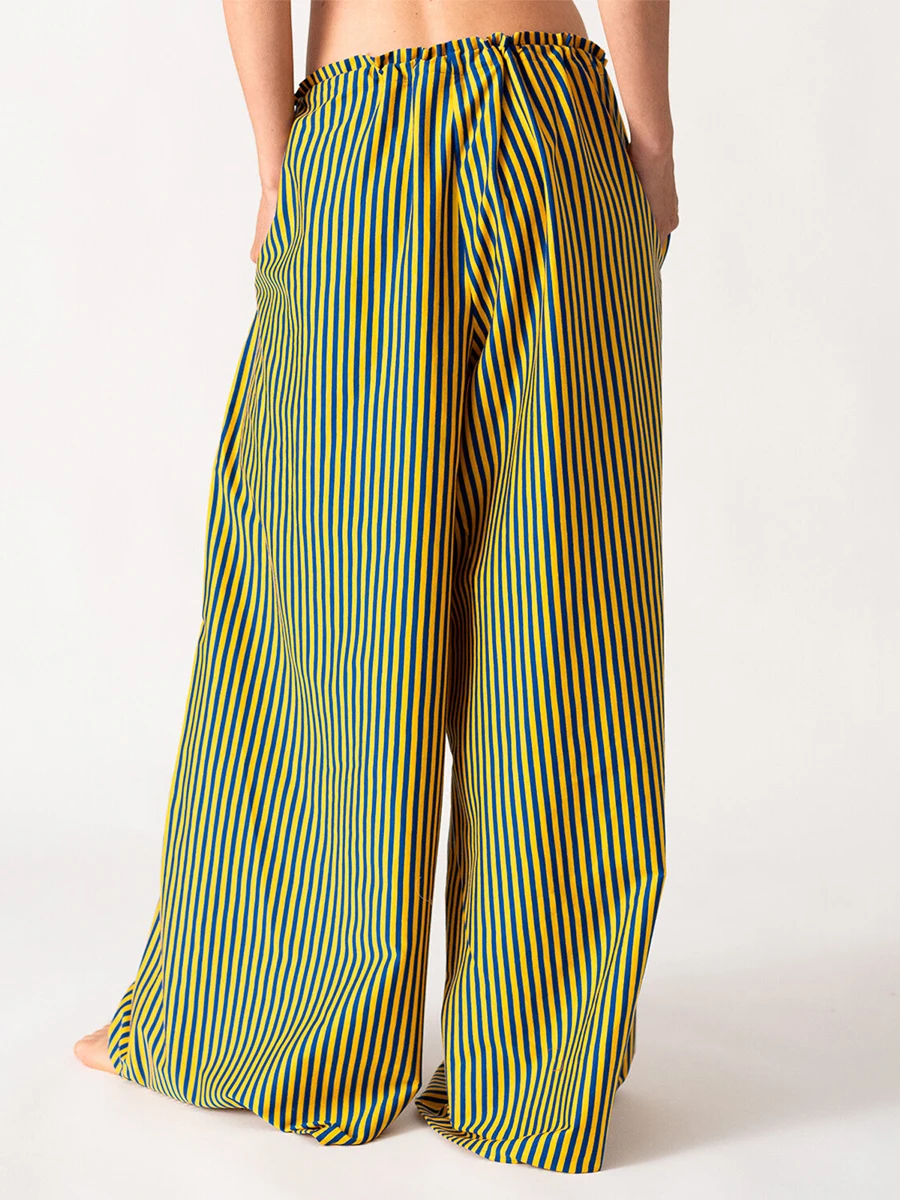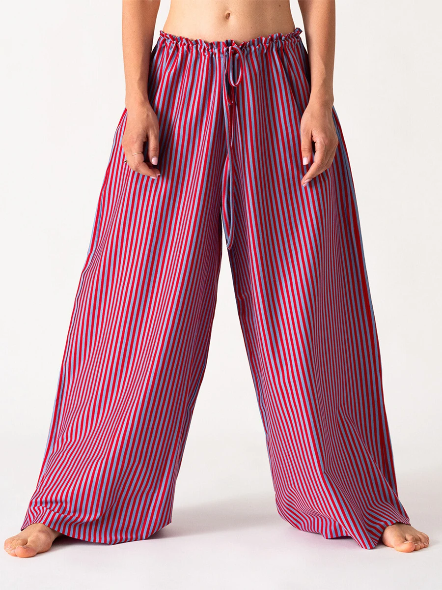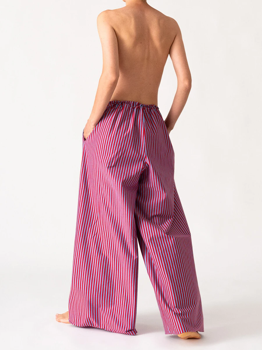 Women's Spring Summer Baggy Pants Solid Color/Striped Drawstring Loose Wide Leg Trousers