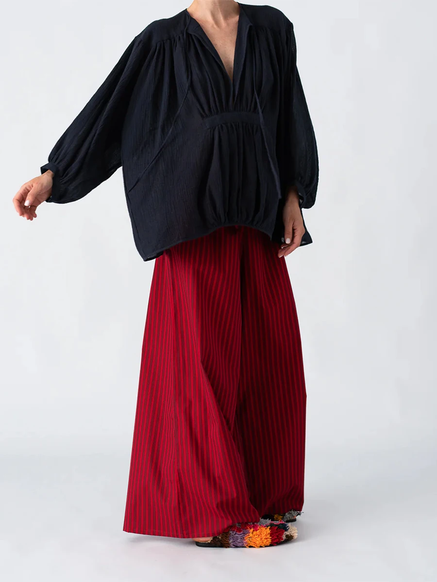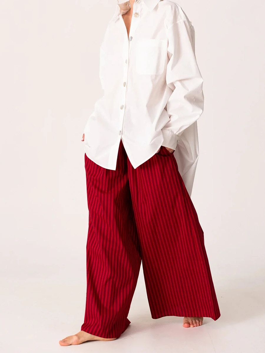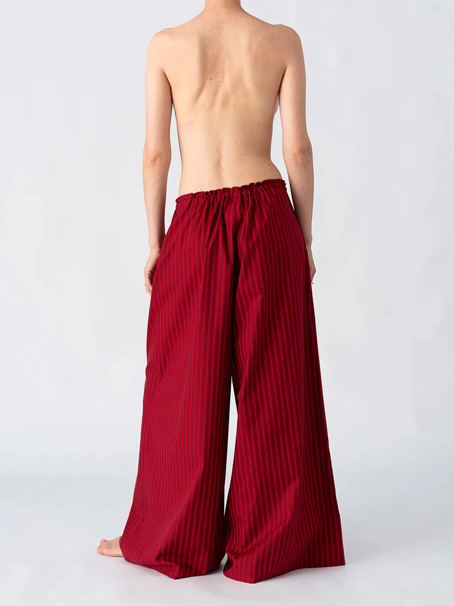Women's Spring Summer Baggy Pants Solid Color/Striped Drawstring Loose Wide Leg Trousers
