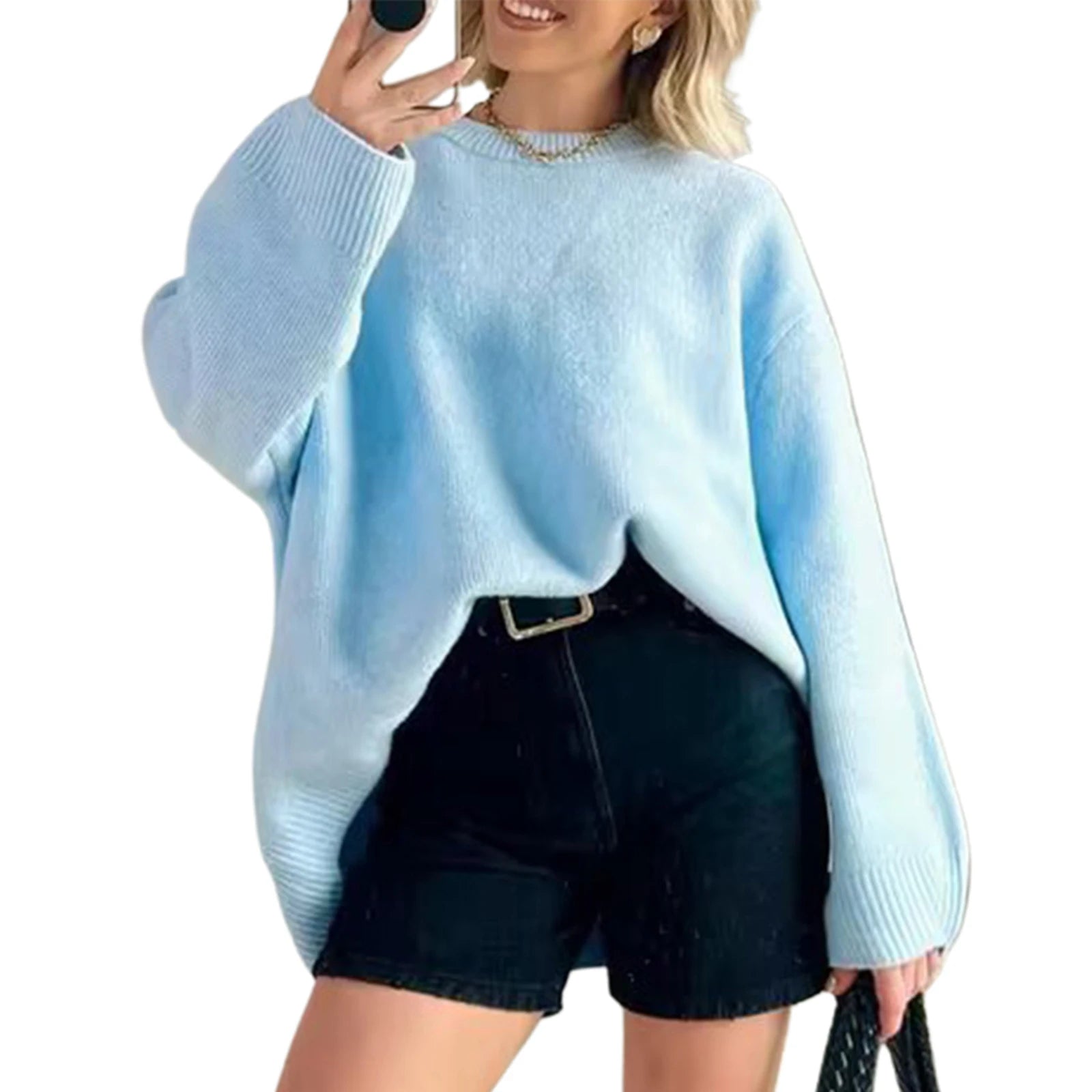 Women s Cozy Knit Pullover Sweater with Long Sleeves and O Neckline in Classic Solid Color for Casual Fall Winter Style