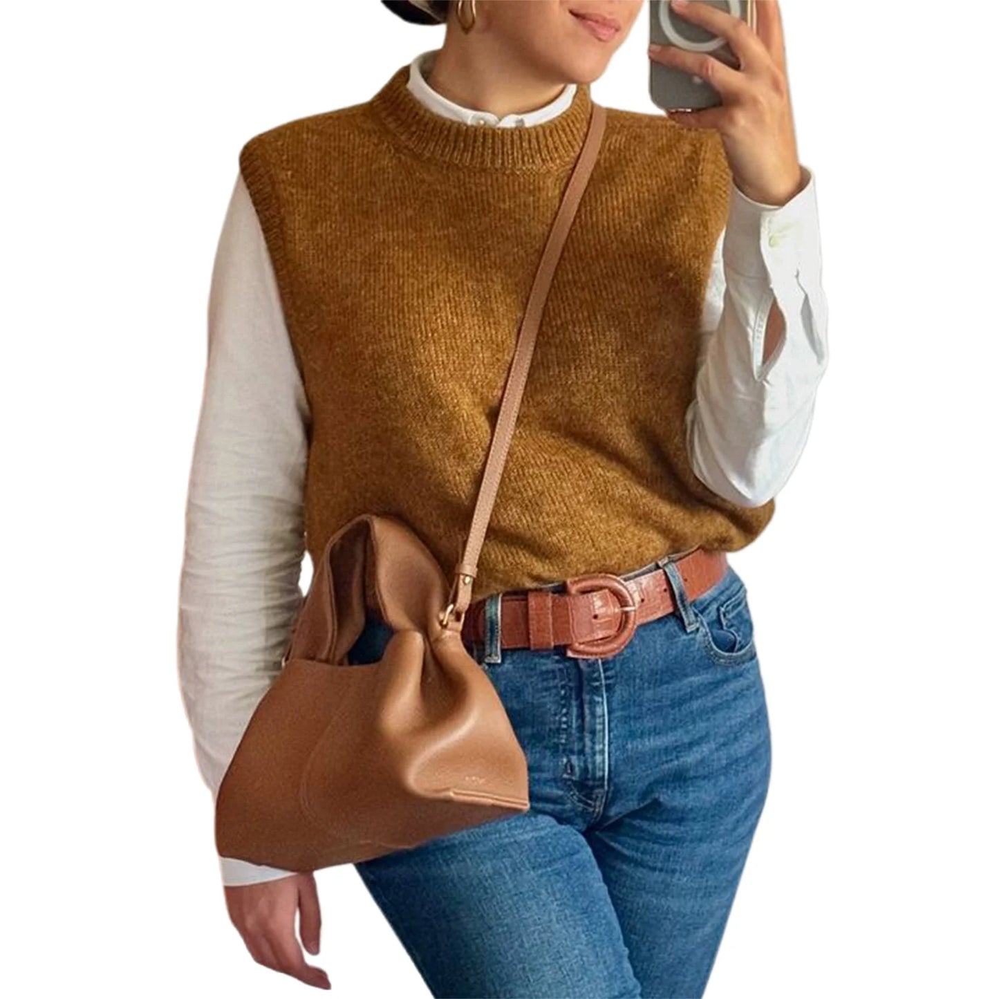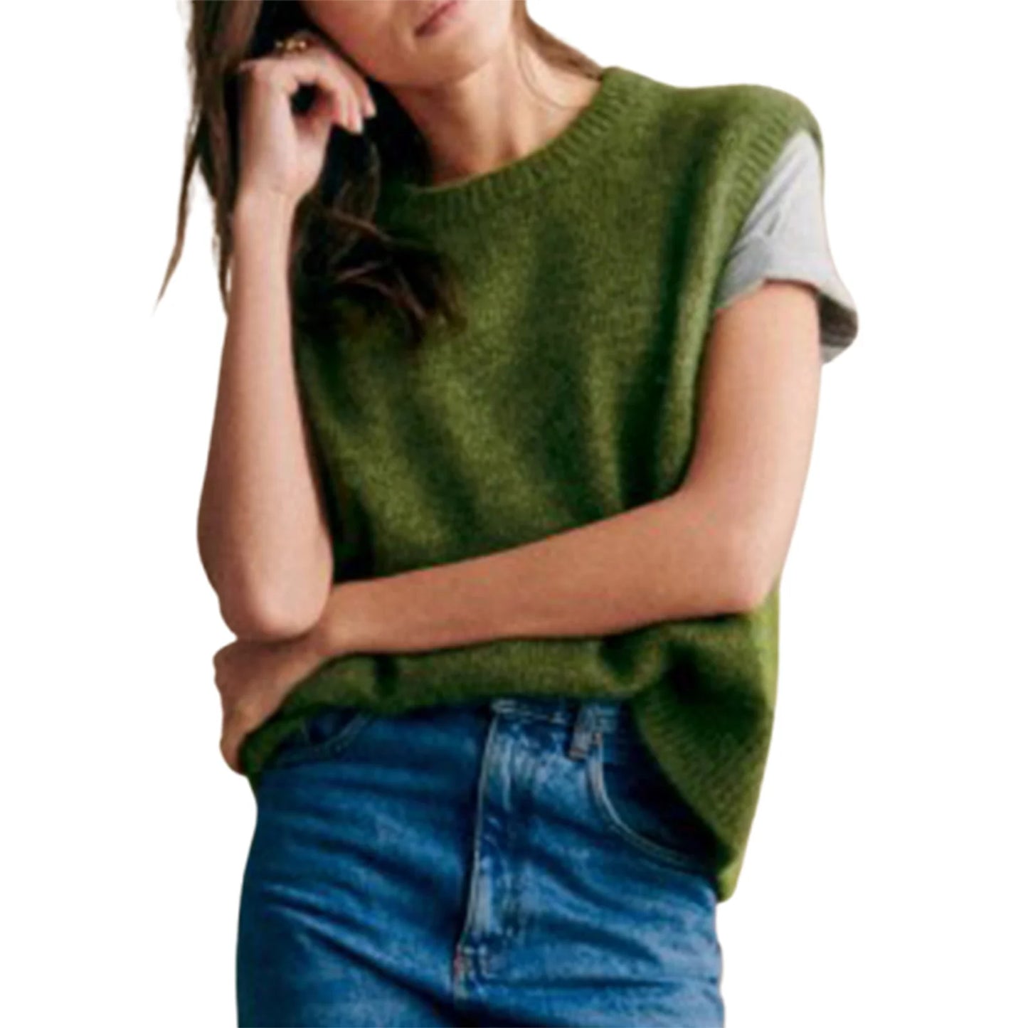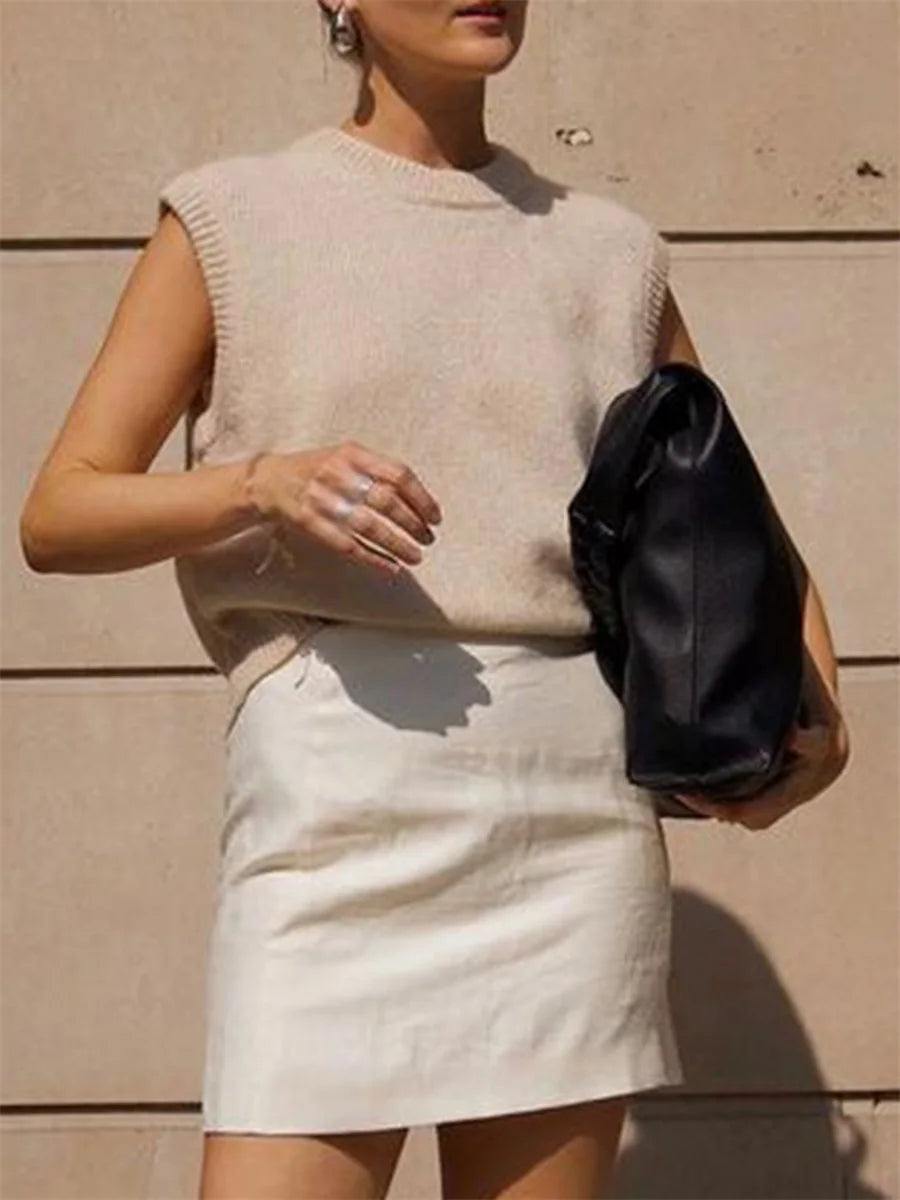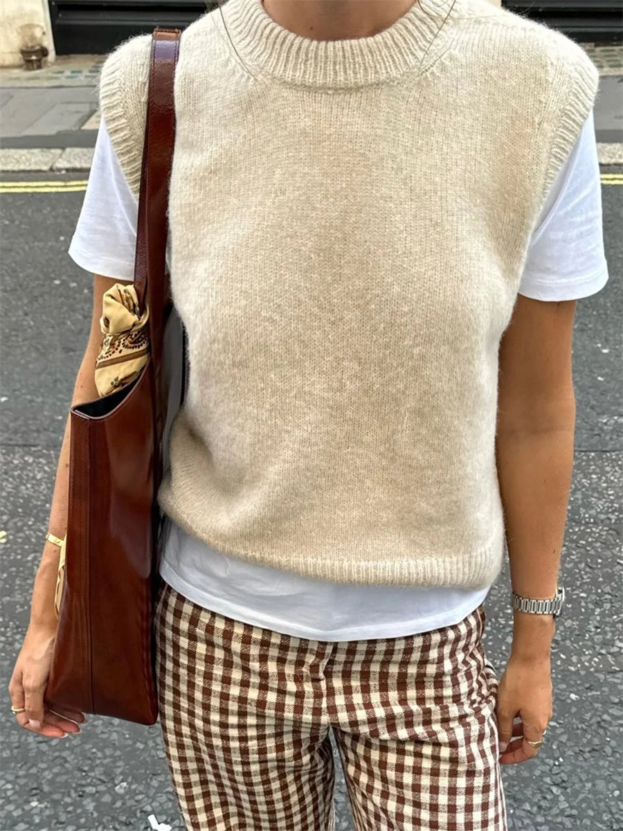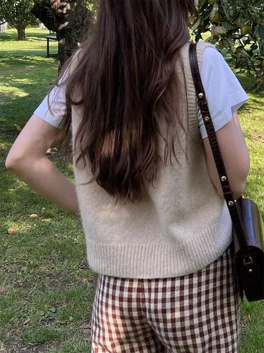Women s Cozy Knitted Sleeveless Sweater Vest in Solid Color Perfect for Layering and Streetwear Fashion