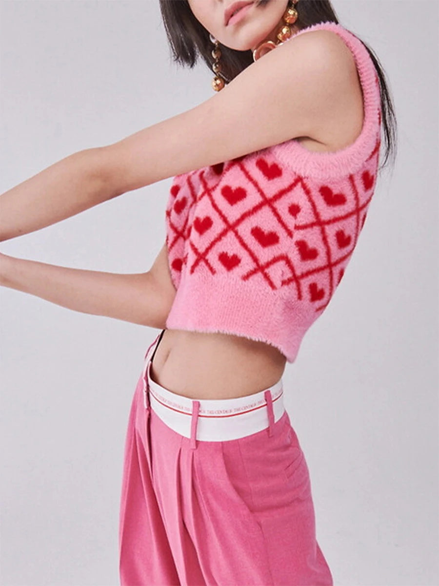 This Heart Print Sweater Vest combines style and comfort with its playful design and cozy fit, perfect for layering during cooler days. This Heart Print Sweater Vest is perfect for layering over shirts or dresses, adding a charming and cozy look to your wardrobe. It's ideal for casual wear or creating a cute, seasonal outfit with its heart motif.