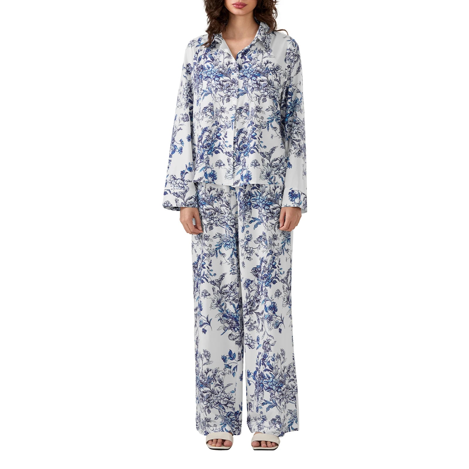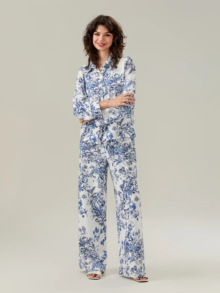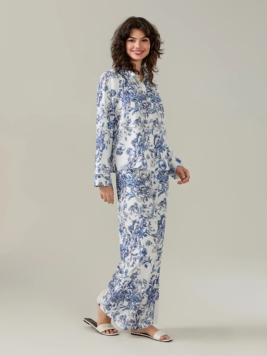 Women's Floral Print Pajama Set – Turn-Down Collar