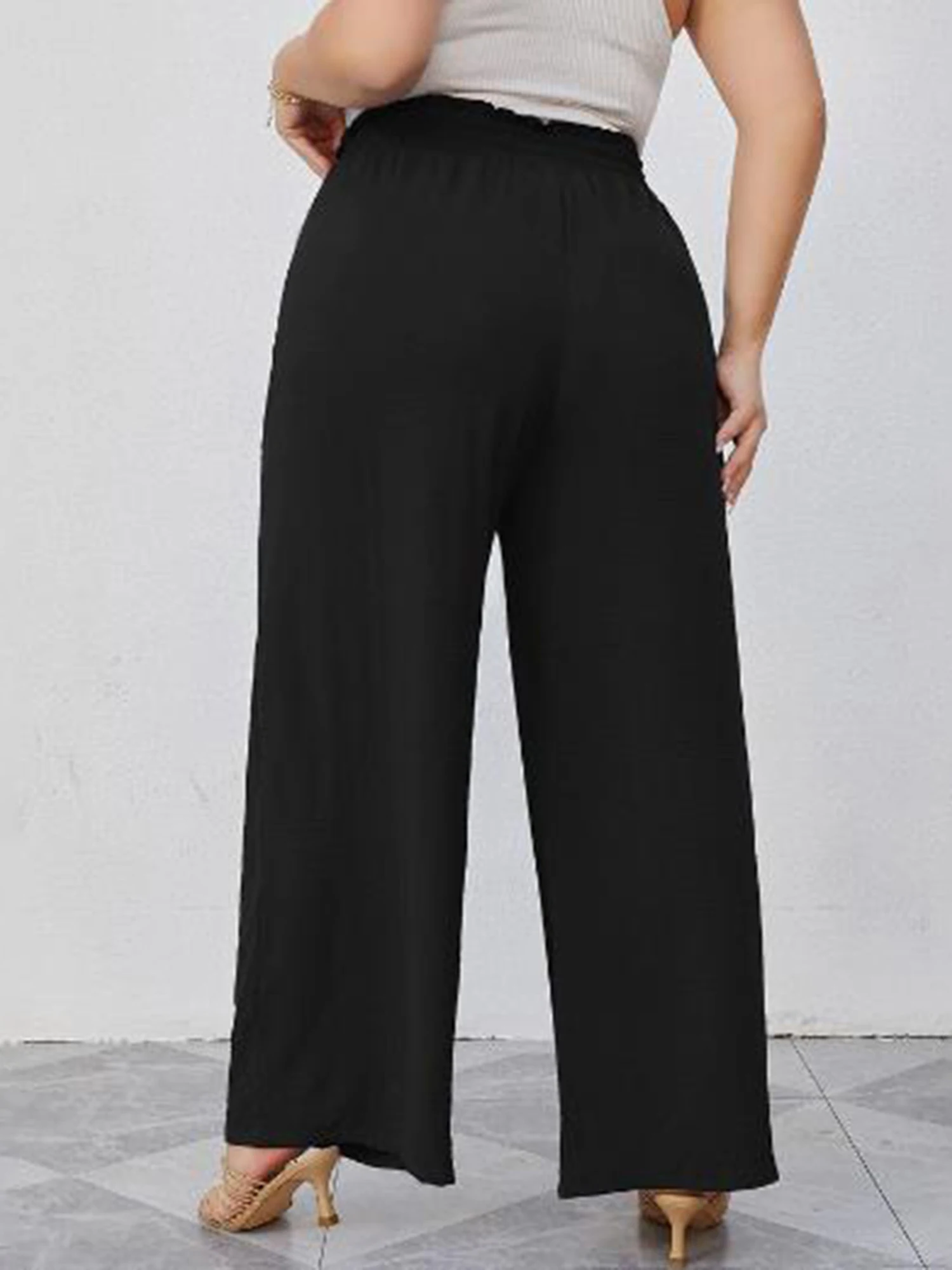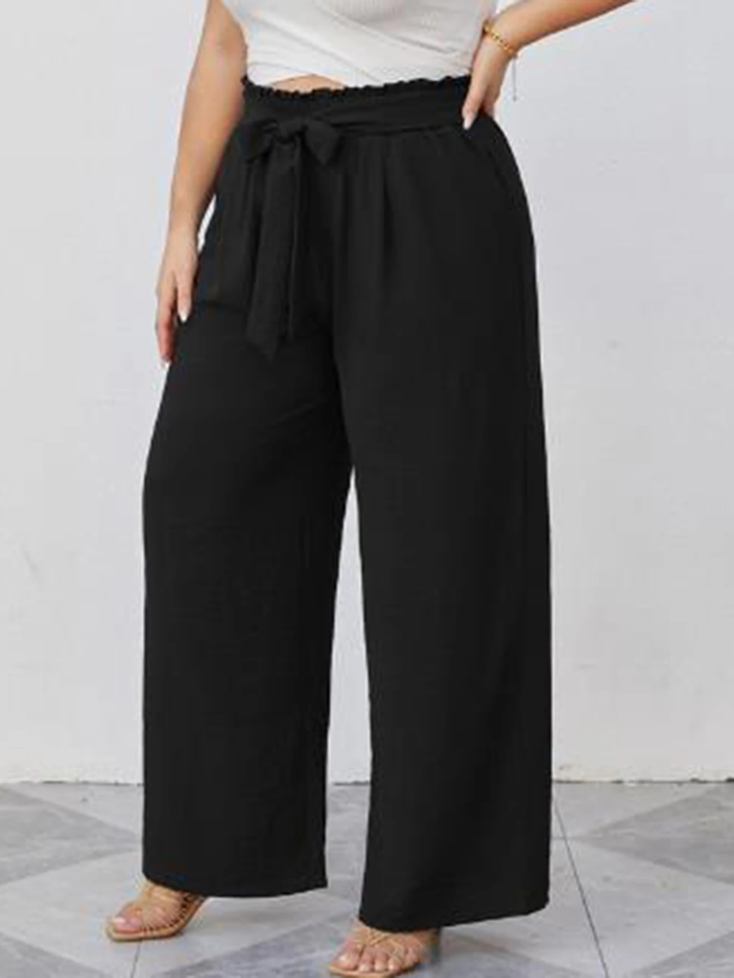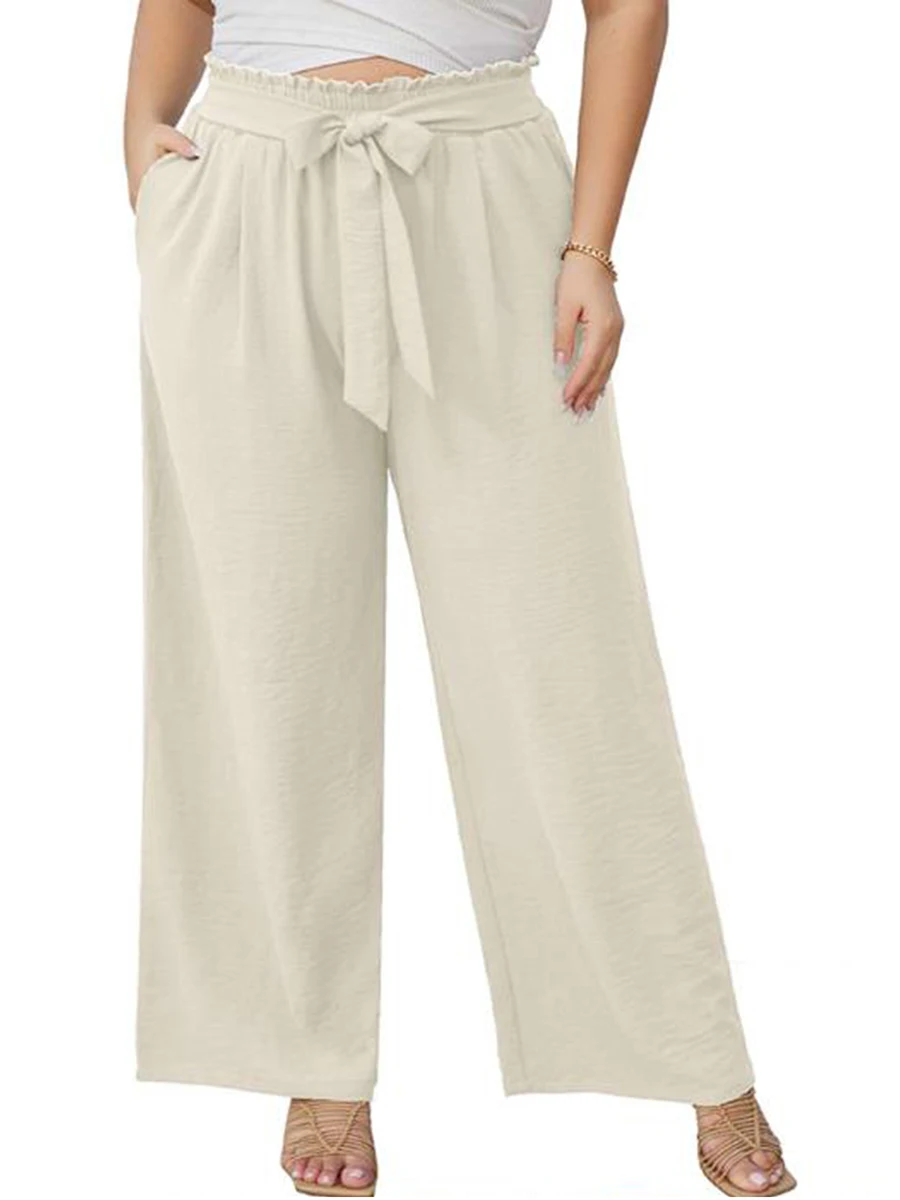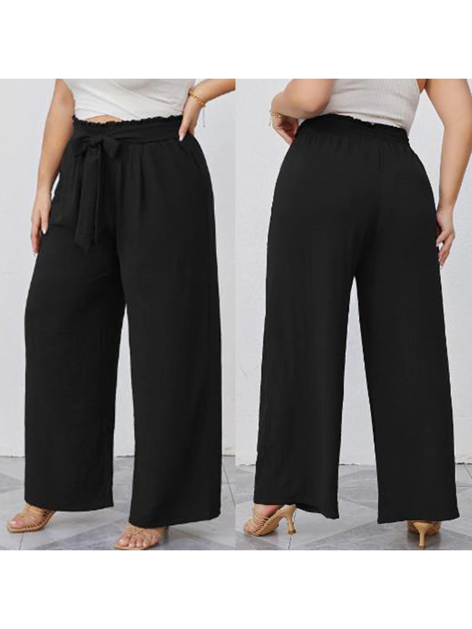 Women s Fashionable Wide Leg Trousers in Plus Size with Stylish Tie-Up Belt and Convenient Pockets for a Chic Look
