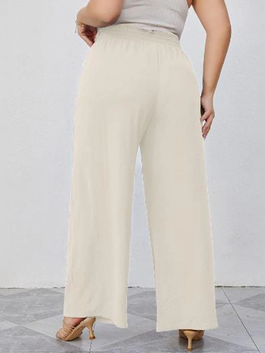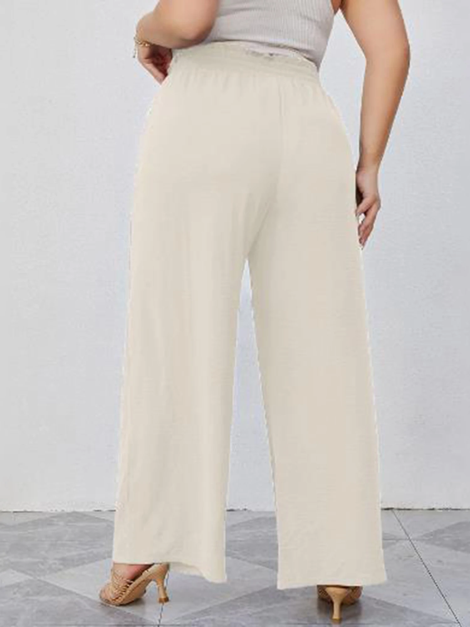 Elevate your wardrobe with these high-waist wide-leg pants, designed for both comfort and style. Crafted from polyester waffle fabric, they offer a textured look with a breathable and lightweight feel. The elastic waist ensures a secure yet comfortable fit, while the tie-up belt adds a stylish, adjustable touch. Featuring a pleated front style and wide-leg silhouette, these pants provide a flattering drape and effortless elegance. Perfect for casual outings, office wear, or lounging, these full-length pants are a versatile addition to any wardrobe. Pair them with a fitted top for a chic, balanced look.