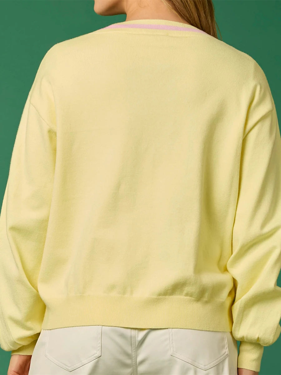 This Holiday Prints Sweater brings warmth and festive charm, perfect for casual winter wear or seasonal celebrations. This holiday-themed sweater is a must-have for the season, with its cozy knit construction and playful prints that bring festive cheer to your wardrobe. Perfect for pairing with jeans or skirts for casual outings or cozy indoor wear.