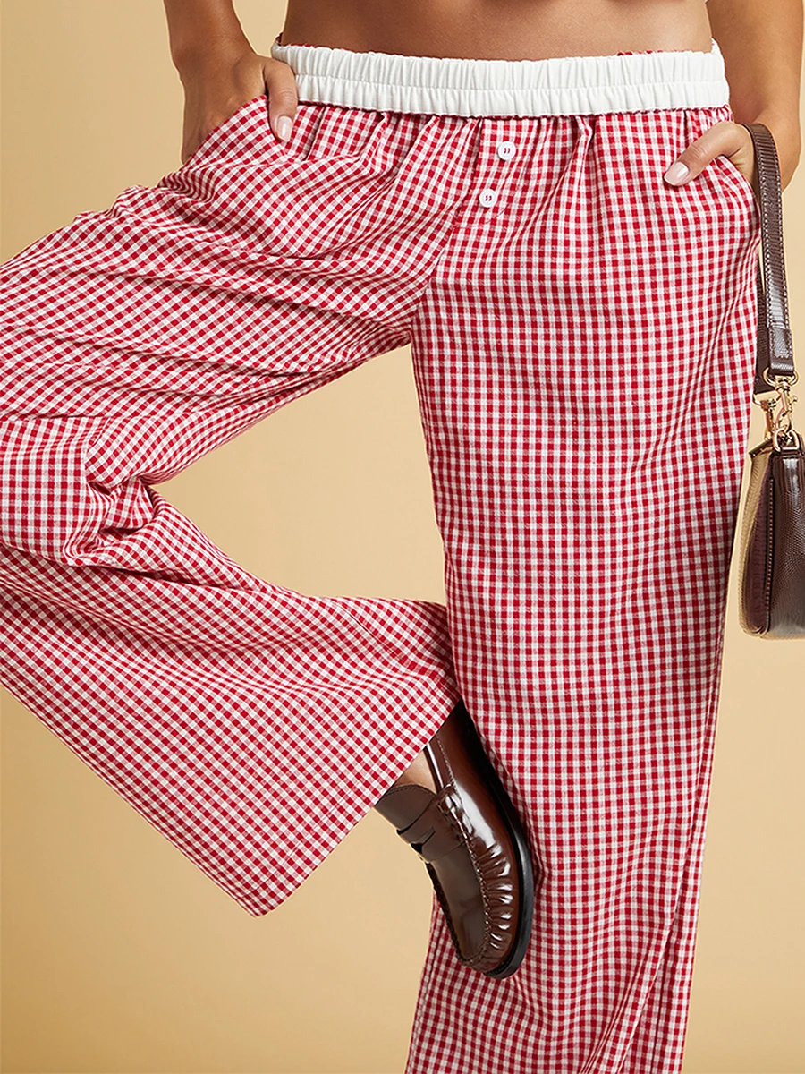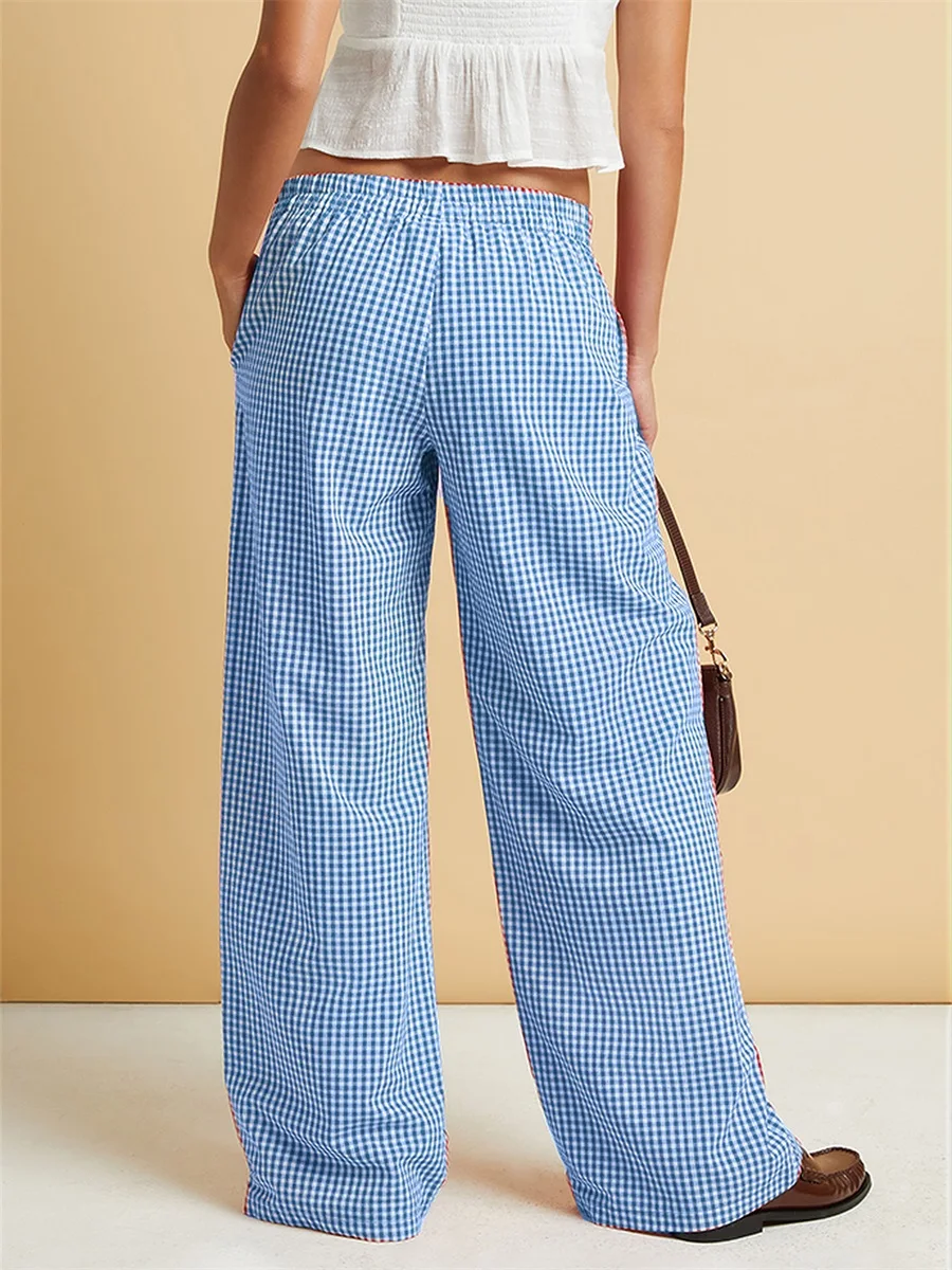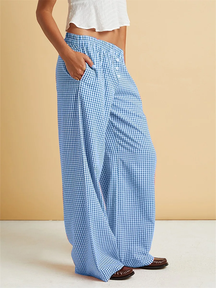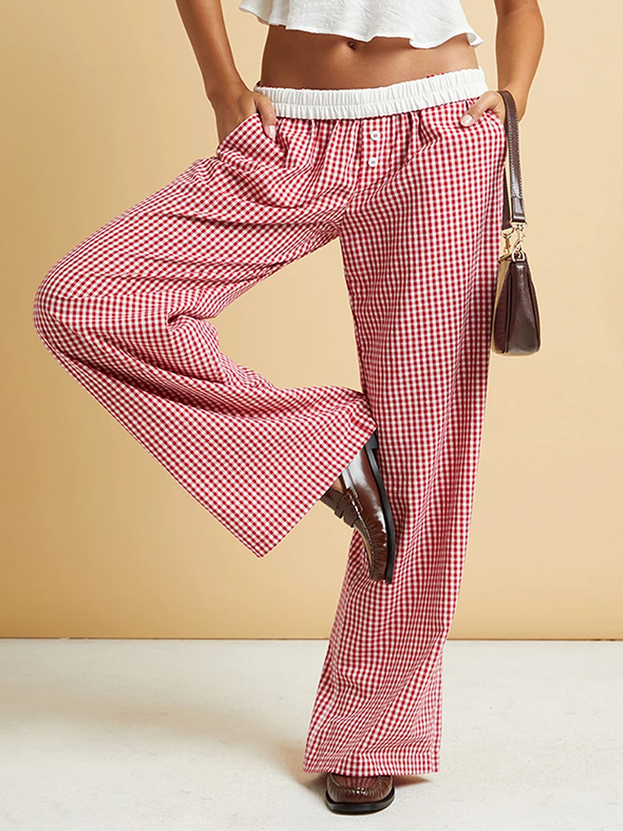 Women s Plaid Wide-Leg Pants with Button Detailing Elastic Waistband and Loose Fit for a Casual Spring Summer Look - Stylish