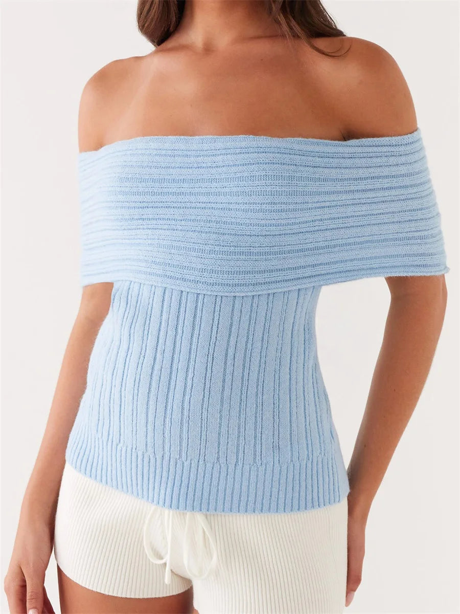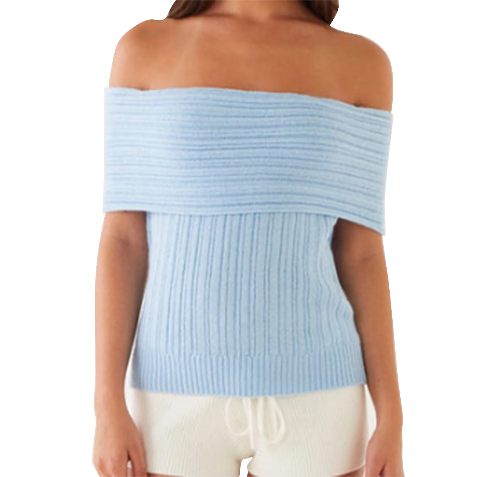 Women s Ribbed Off Shoulder Crop Top with Boat Neck and Sleeveless Design Fit Knitted T-Shirt Perfect for Spring and Summer