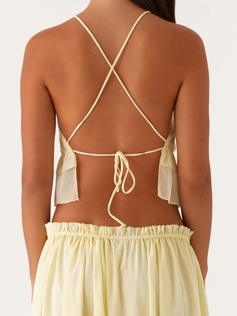 Women Summer Crop Camisole Casual Cross Straps Tie up Backless Spaghetti Straps Tank Tops for Club StreetwearFeatures