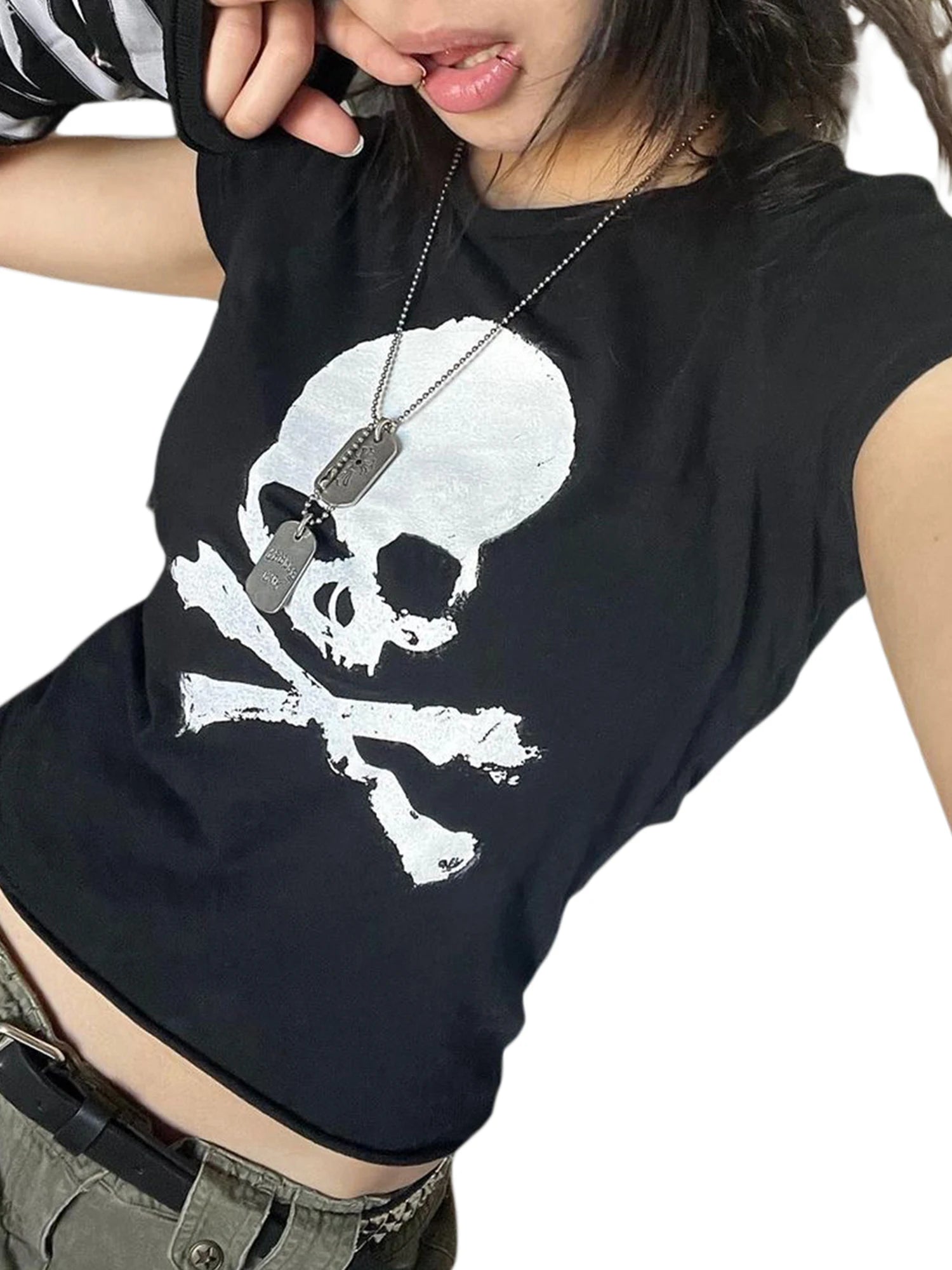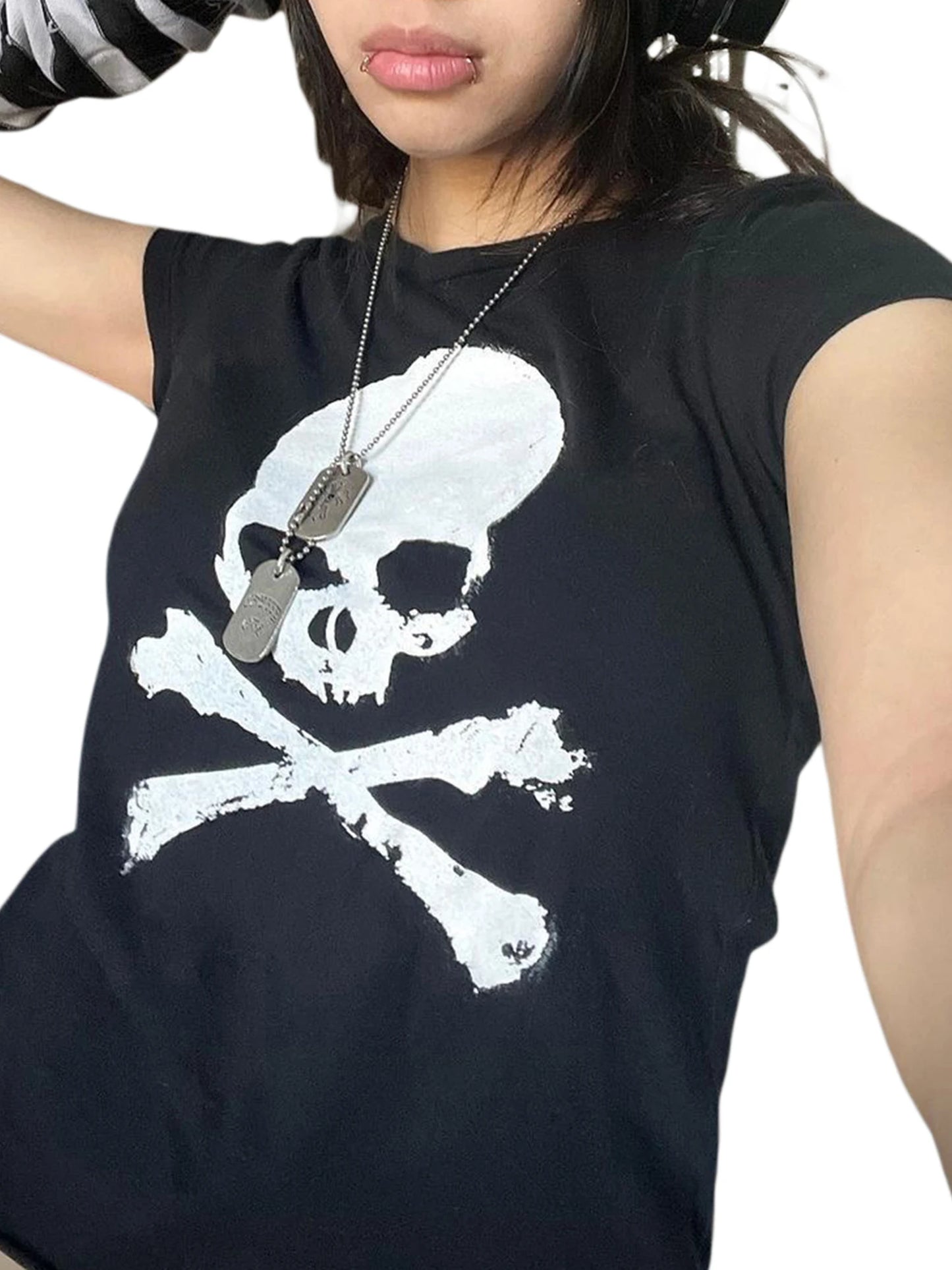 Women Sweater, Short Sleeve Round Neck Skull Print Knitting Party Casual Tops Elastic Shirts