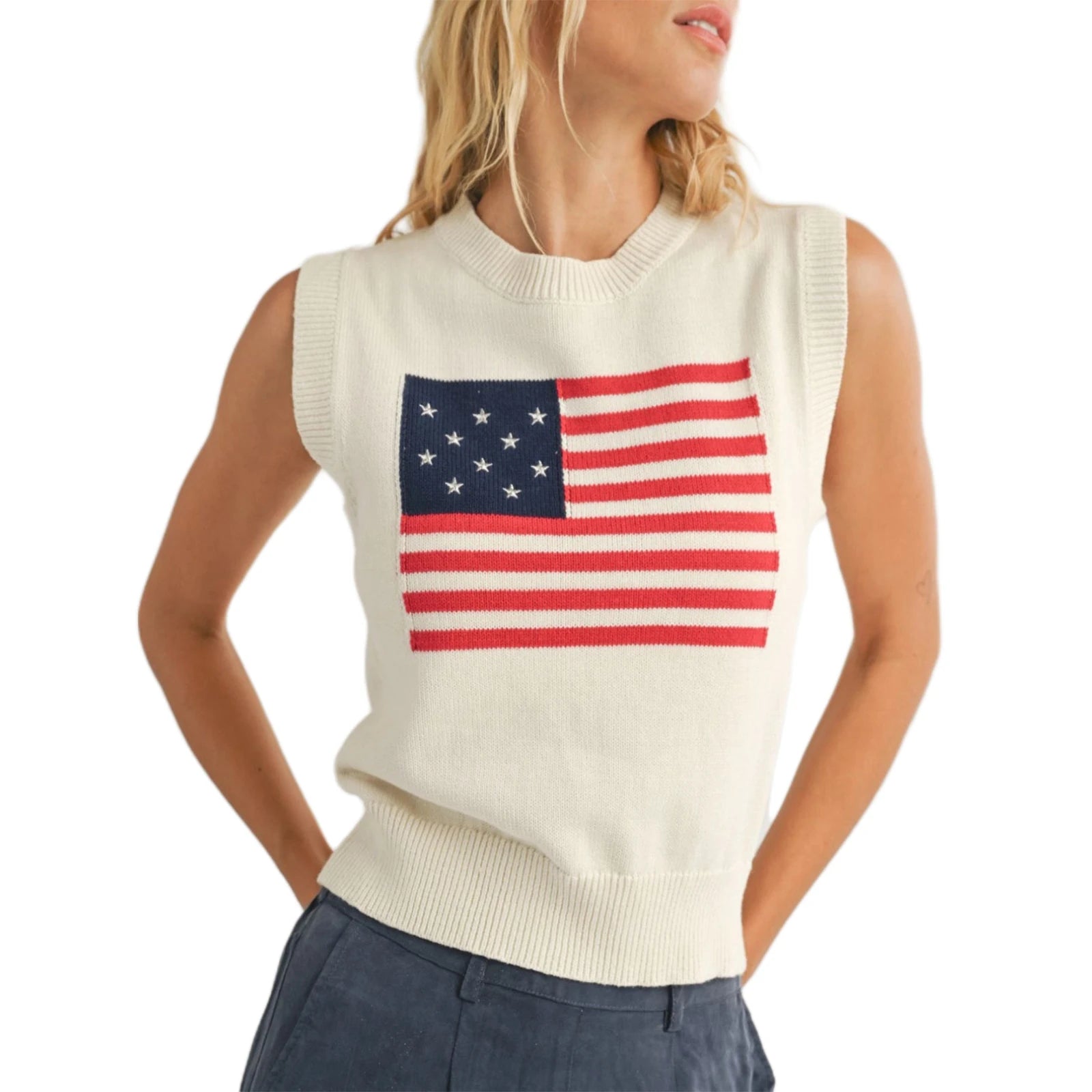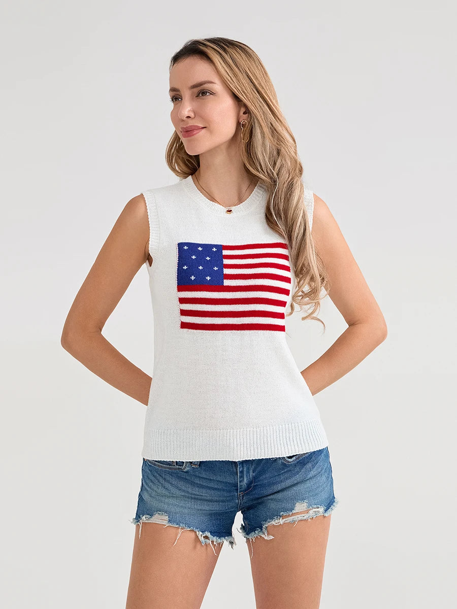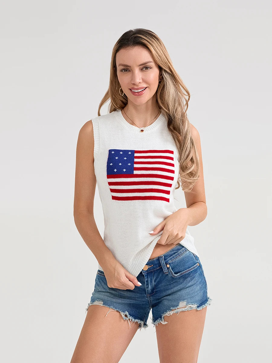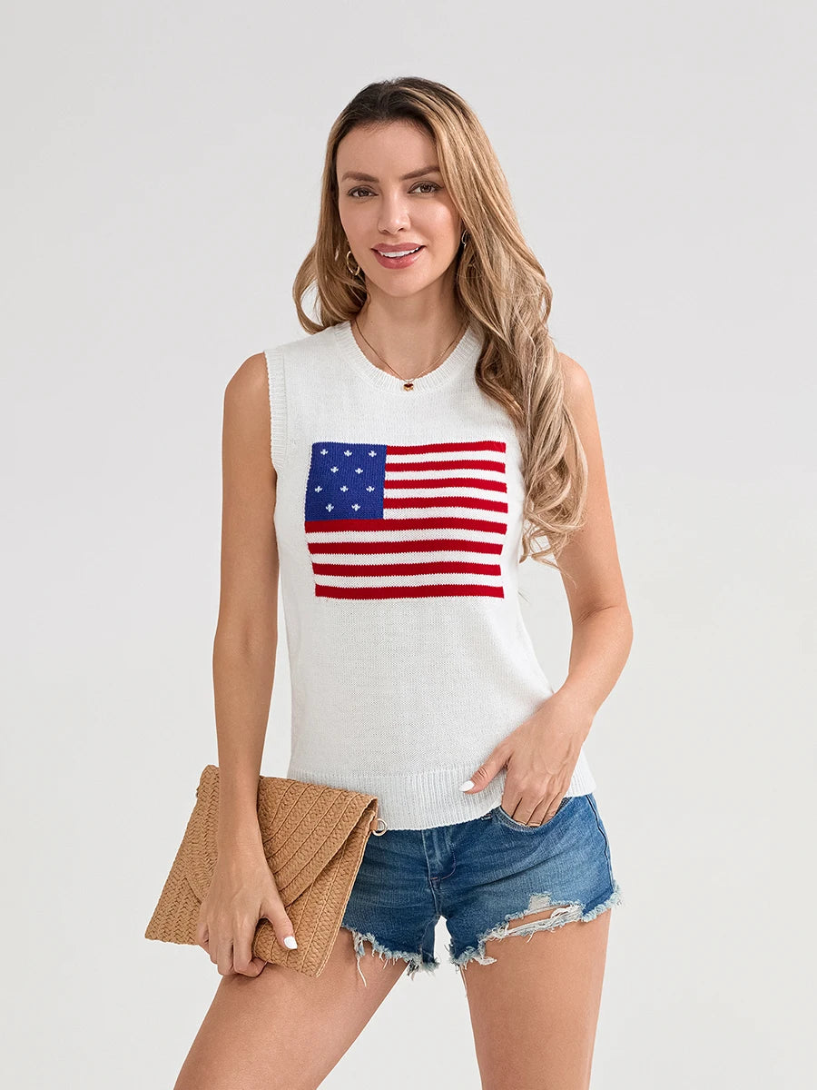 Women s Sleeveless Knit Tank Top with American Flag Print Casual Summer Vest for Daily Wear and Date Nights
