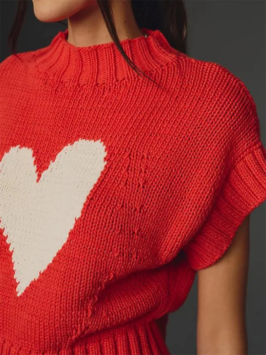 Women s Sleeveless Sweater Vest Heart Patterned O-Neck Knit Top Chic Street Style for Work or Weekend Outings