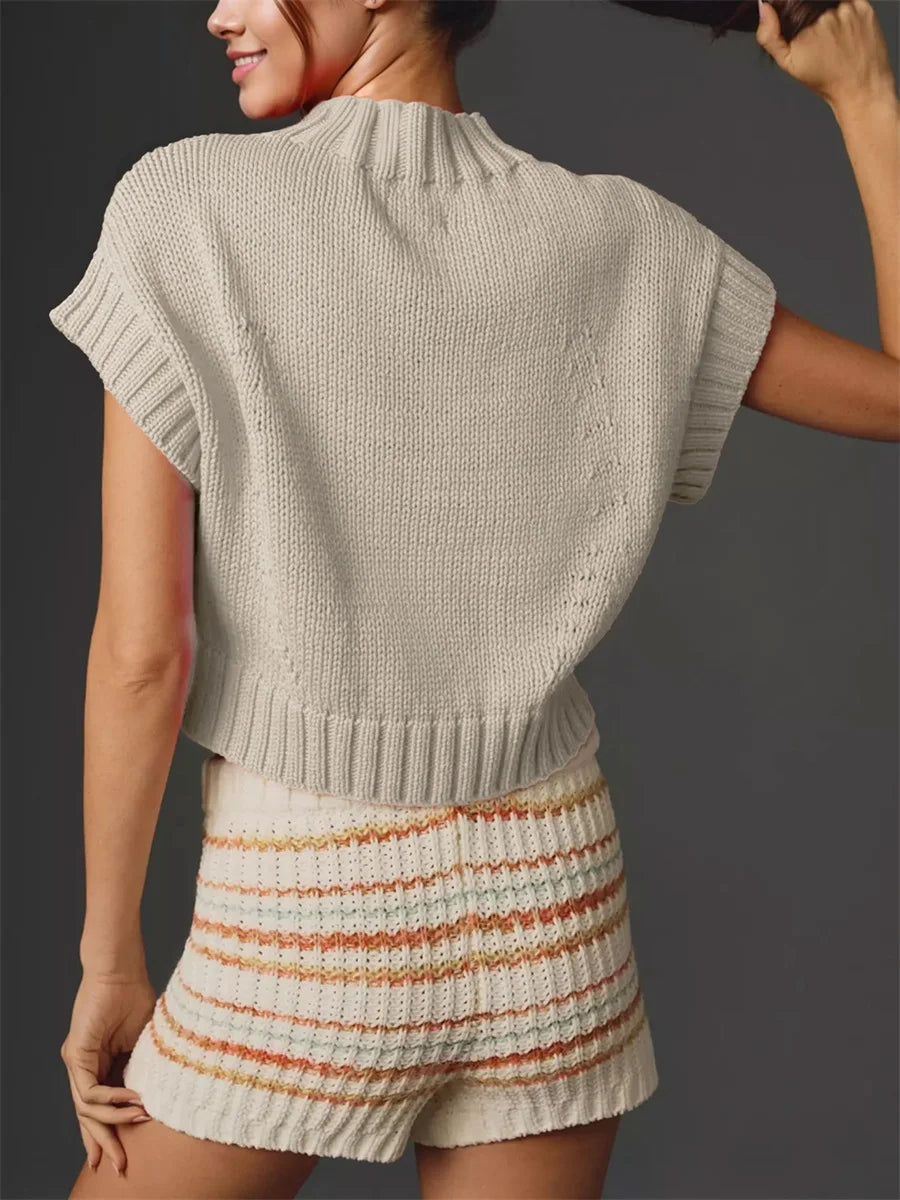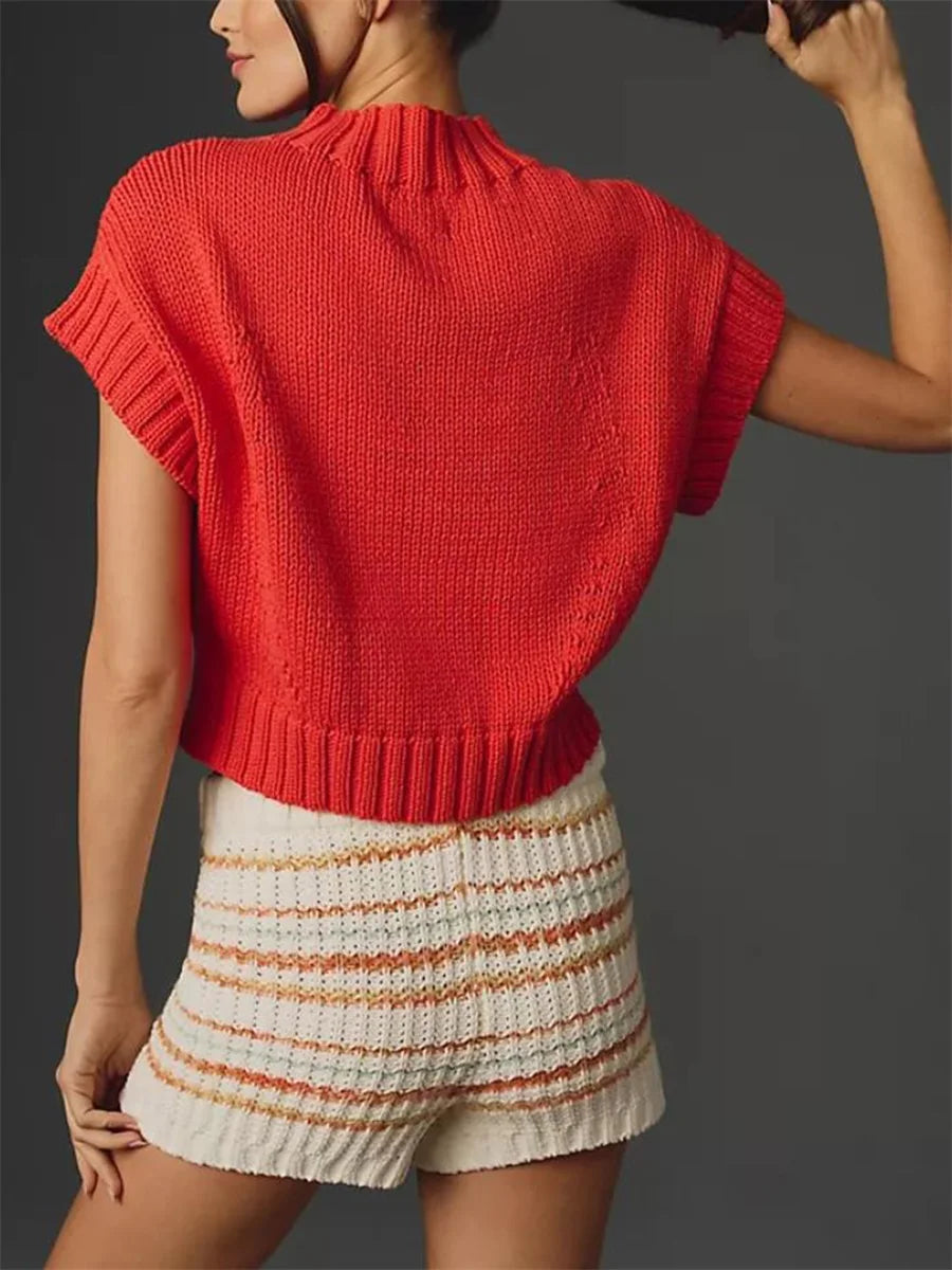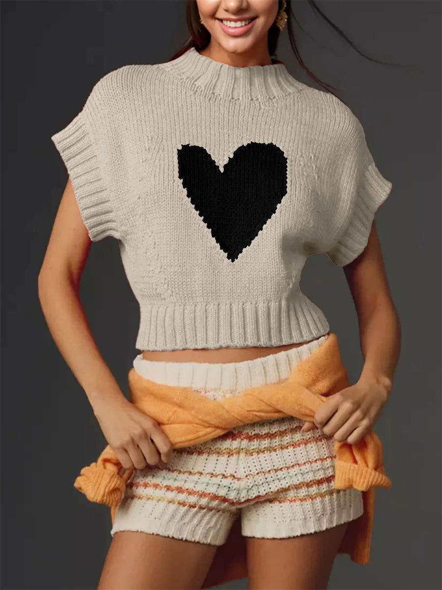 Womens Short Sleeve Sweater Heart Mock Neck Crop Knitted Tops Casual Streetwear for Daily Office Party