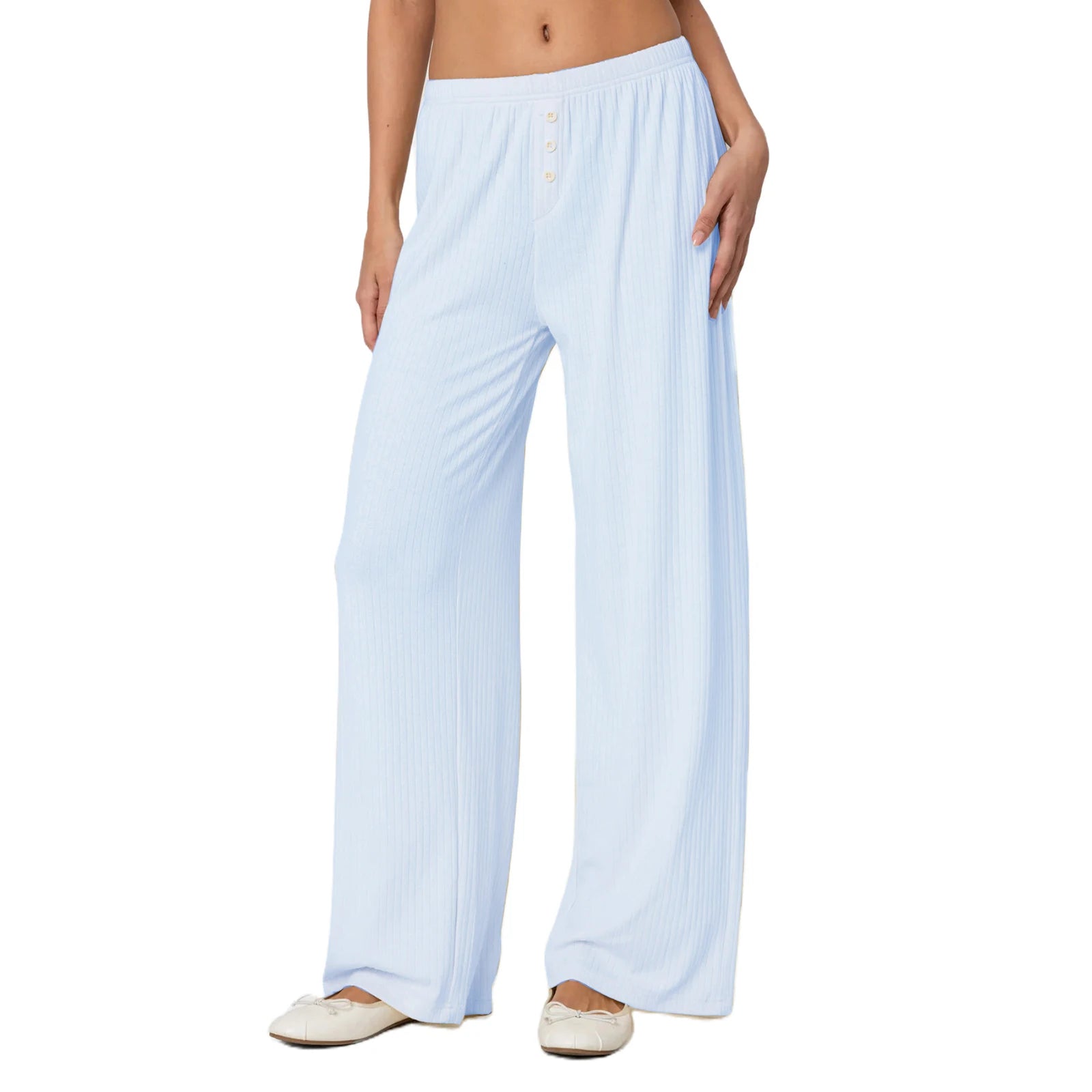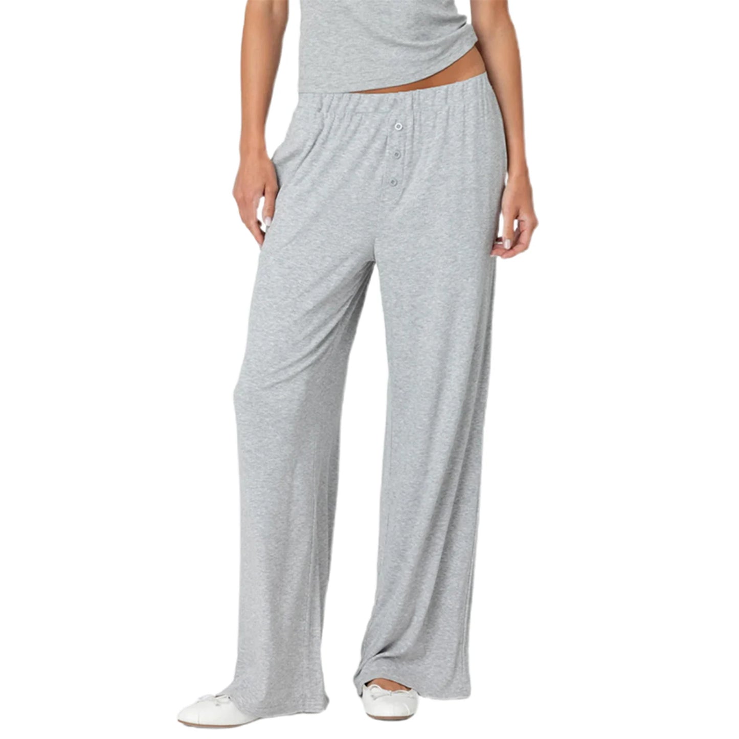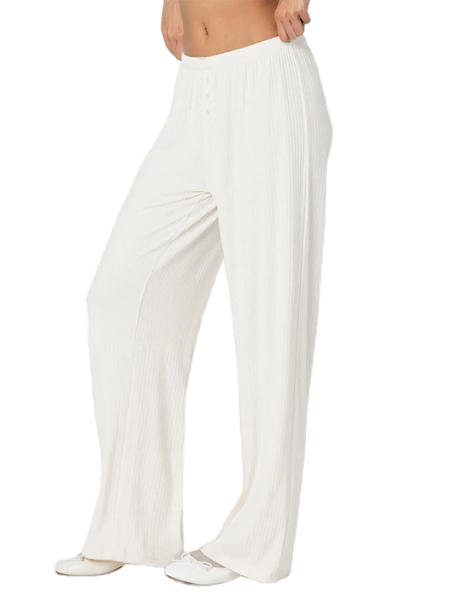 Womens Lounge Pants Loose Solid Color Elastic Waist Long Trousers Casual Streetwear